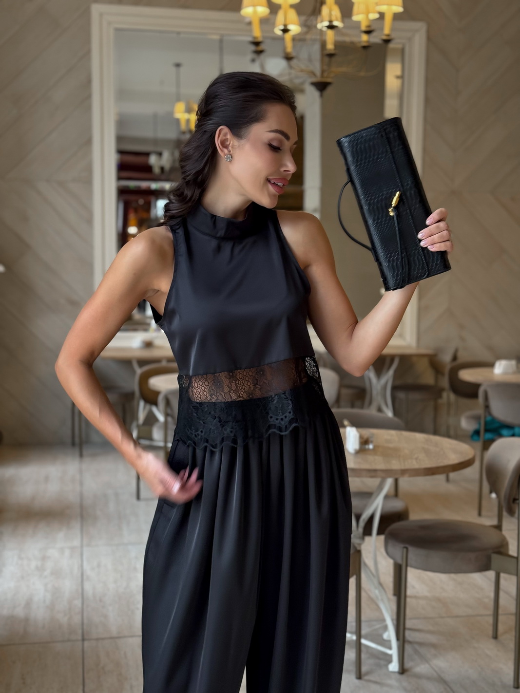 Описание: Элегантный топ с воротником стойкой.Топ свободного силуэта без рукавов. Он придаст женственности и игривости образу благодаря полупрозрачному кружеву.Легко комбинируется с юбками, шортами.