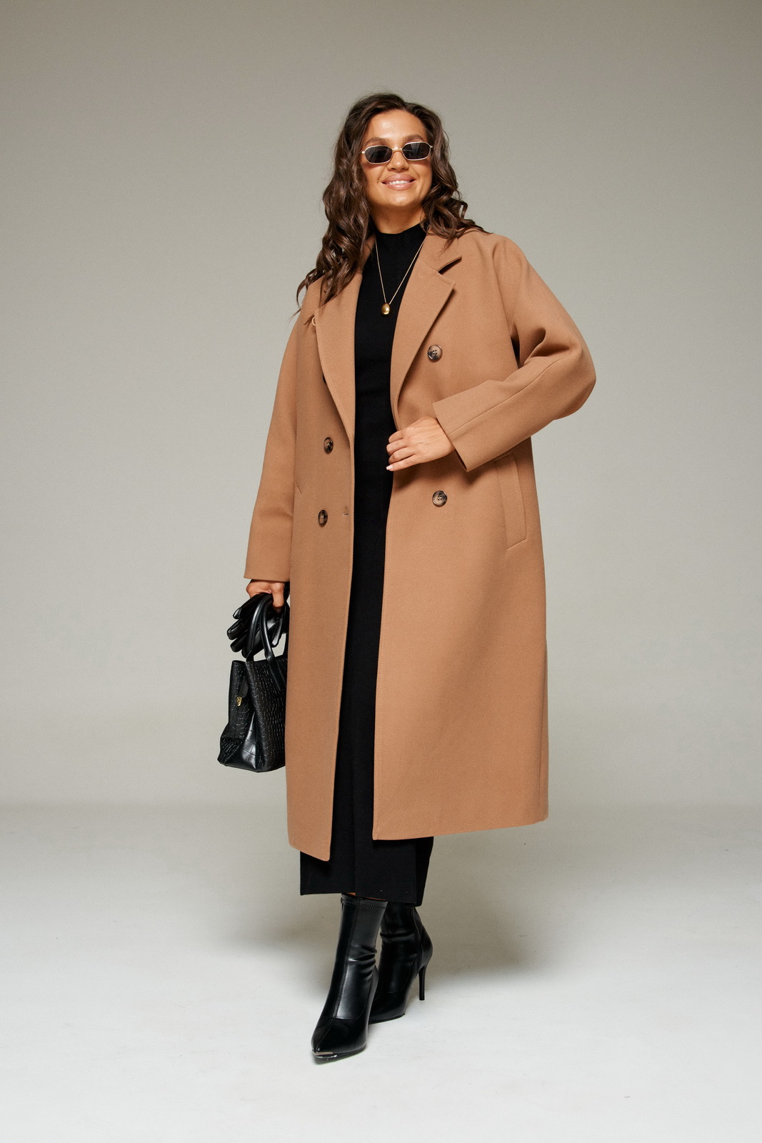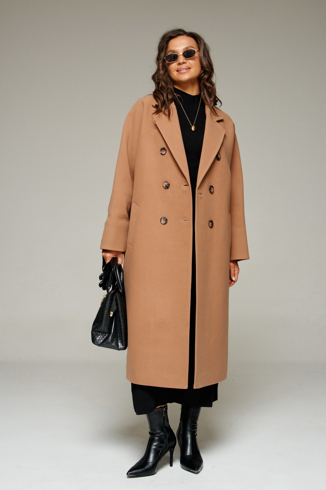 Пальтовыполненоиз шерстяной ткани, которая обеспечивает теплоизоляцию и защитуот ветра и влаги,подходит для межсезонья и теплой зимы.Двубортное, на подкладке. Изделие рассчитано на температурный режим от +10 до -5 градусов.Модель прямого силуэта, чуть расширенная к низу, покроя «летучая мышь»; предназначена для повседневного использования.