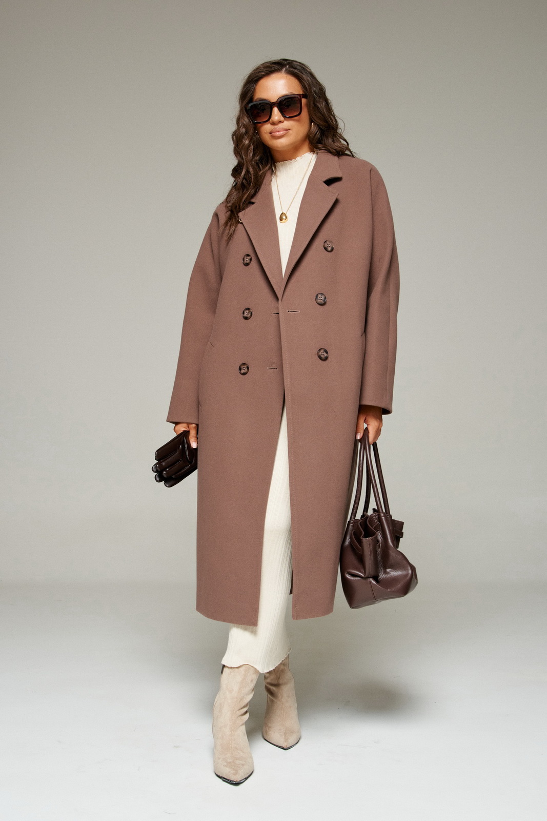 Пальтовыполненоиз шерстяной ткани, которая обеспечивает теплоизоляцию и защитуот ветра и влаги,подходит для межсезонья и теплой зимы.Двубортное, на подкладке. Изделие рассчитано на температурный режим от +10 до -5 градусов.Модель прямого силуэта, чуть расширенная к низу, покроя «летучая мышь»; предназначена для повседневного использования.