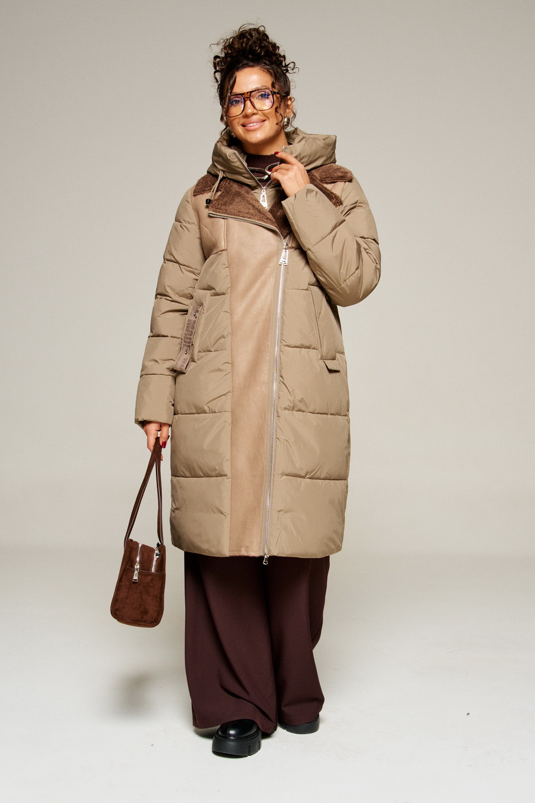 Застежка смещенная на двустороннюю молнию от верха до низа.