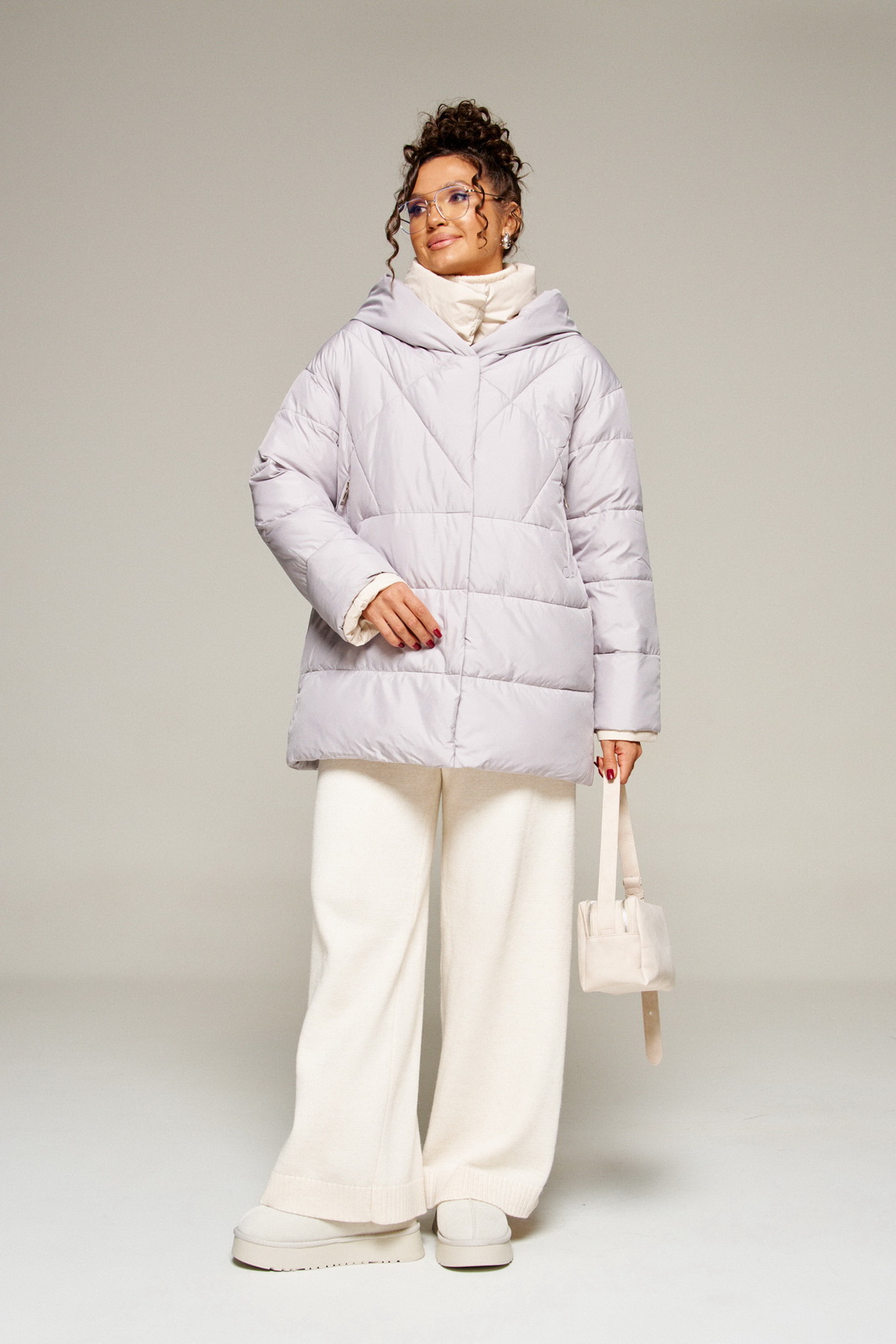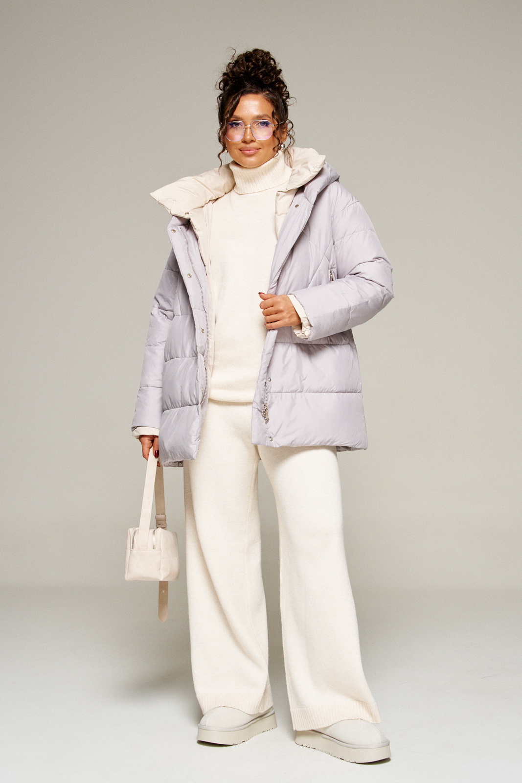 Современный объёмный крой и спущенная линия плеч создают расслабленный актуальный силуэт. А широкий воротник играет роль дизайнерского акцента.