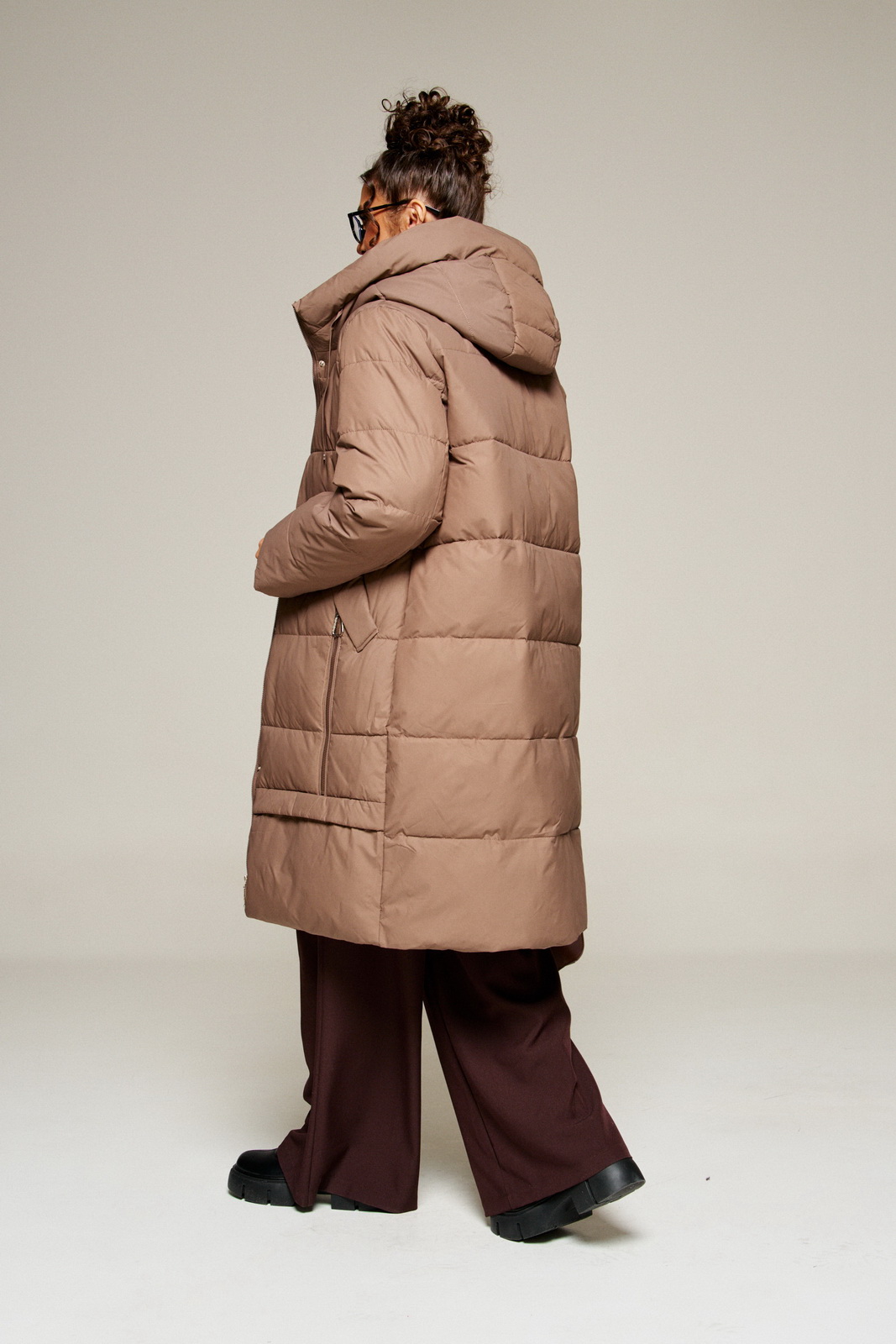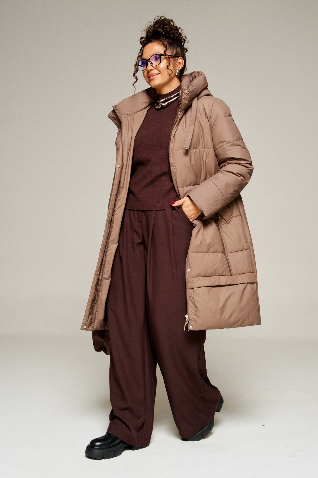 Пальто выполнено из прочной, влагостойкой и приятной на ощупь полиэстерной ткани; на синтетической подкладке. Утеплитель холлофайбер 200 г/м. кв. предназначен для использования изделия при температурном режиме от -10 до -20 градусов.