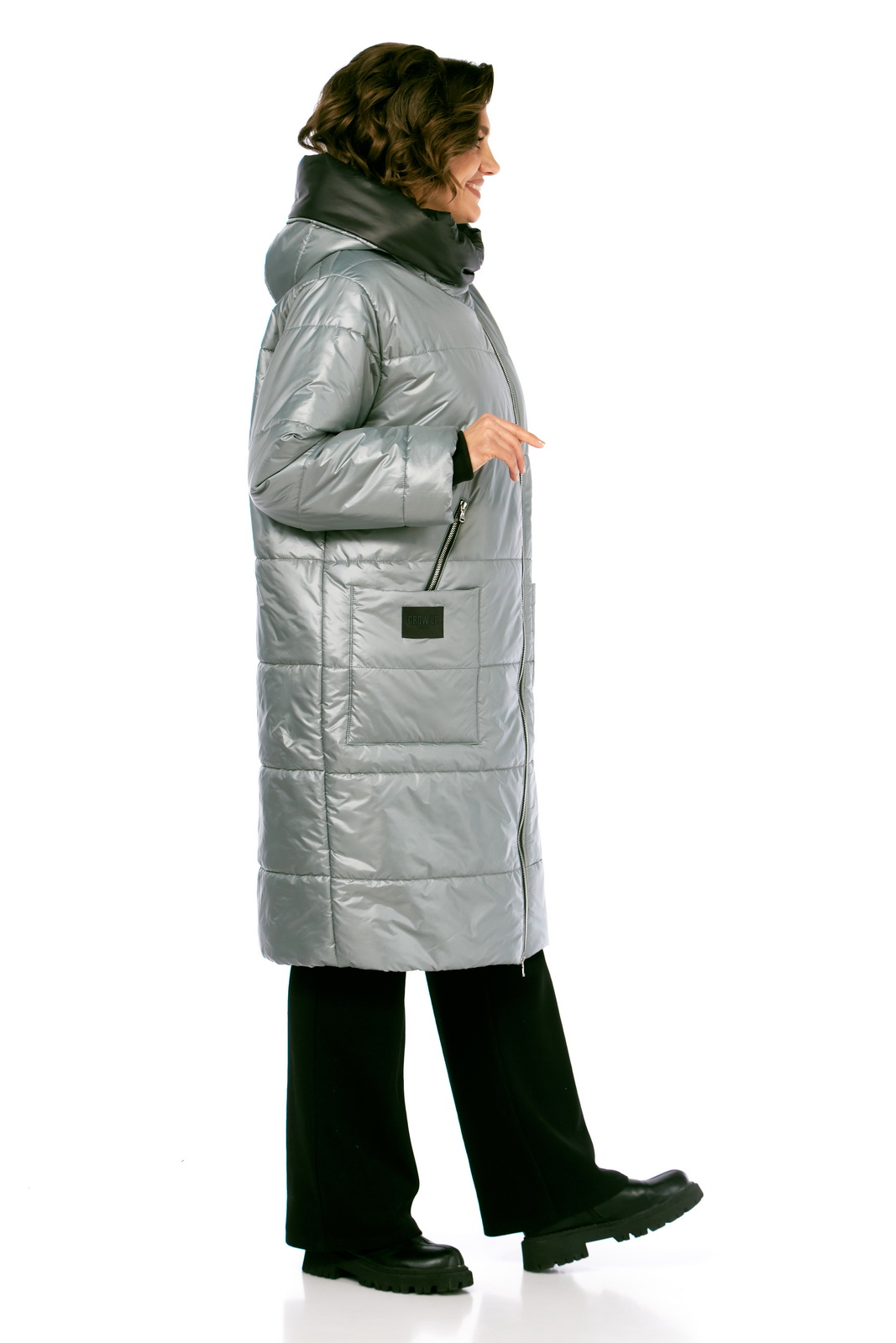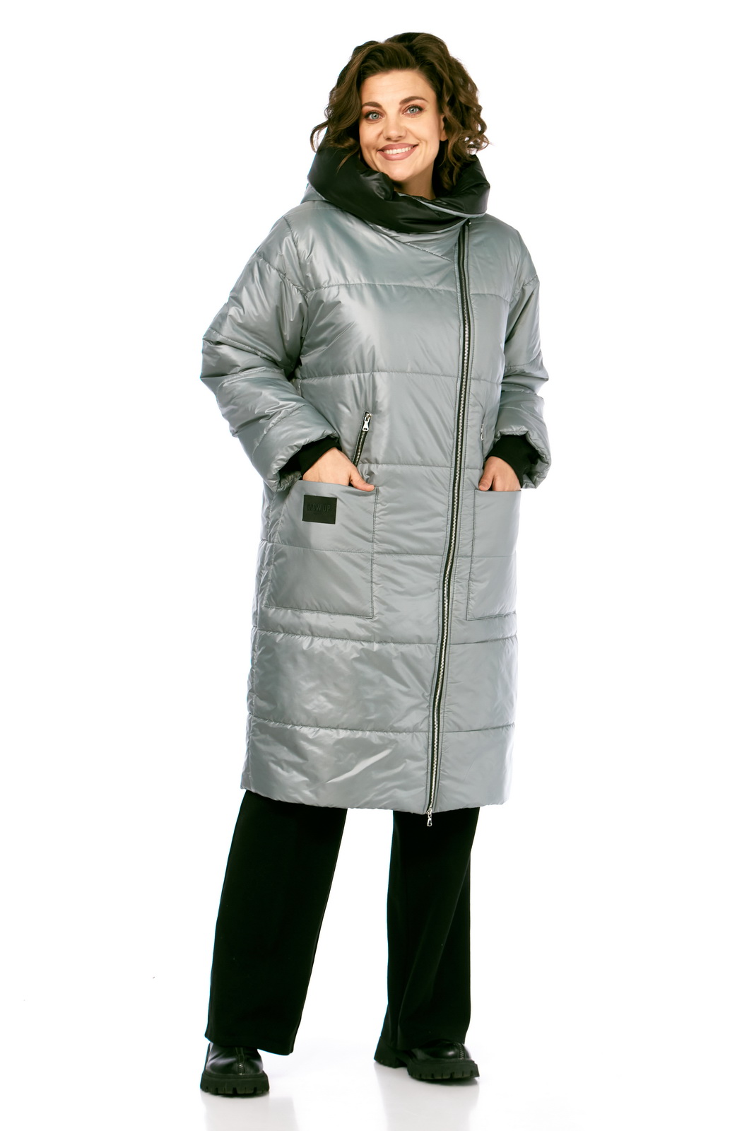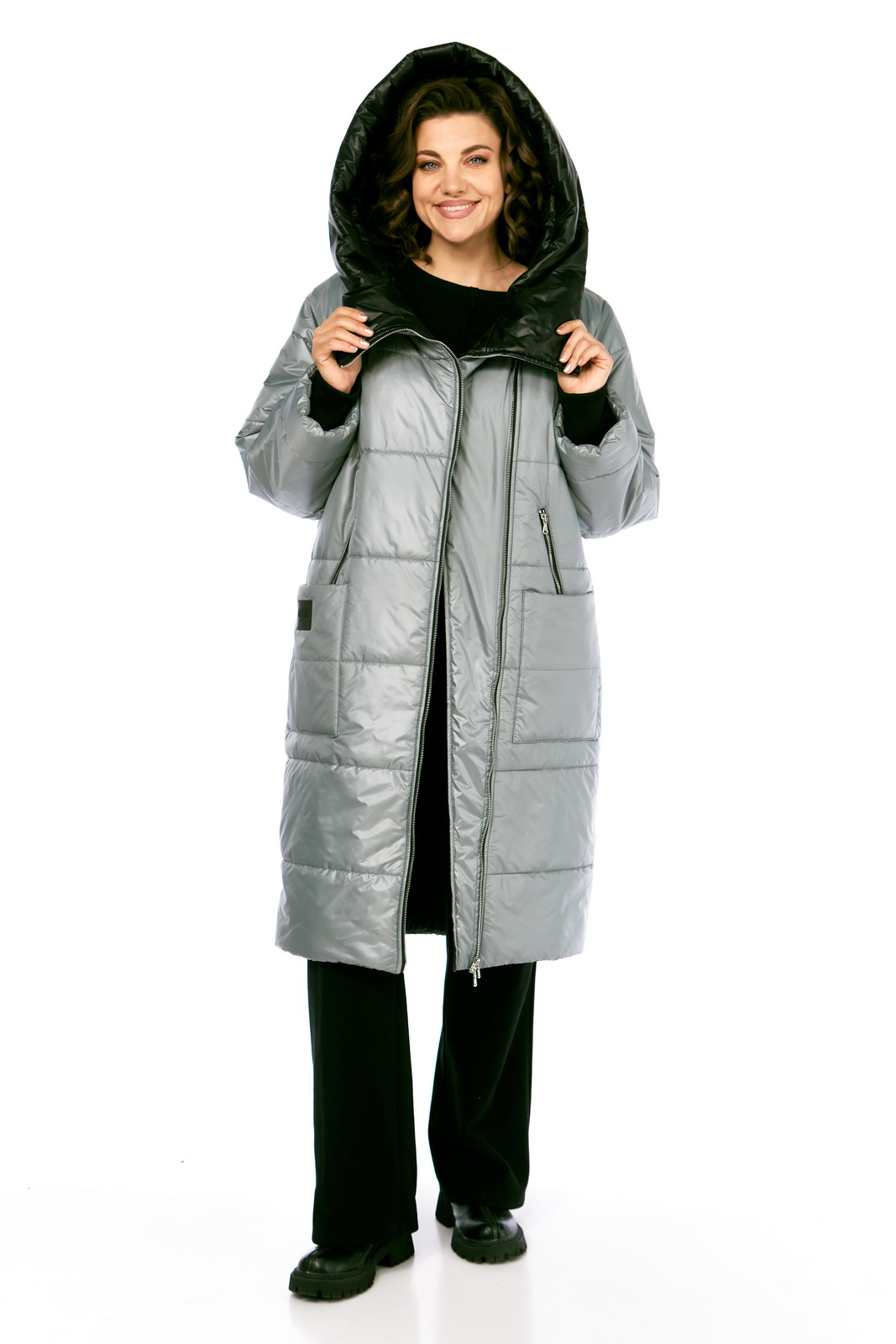 Описание: Пальто женское утепленное свободного кроя с ассиметричной застежкой на “молнию”. Перед с прорезными карманами с “молнией” и накладными карманами. Правый накладной карман с отделочной нашивкой. Рукав втачной одношовный с трикотажным манжетом выходящим из-под подгибки. Объмный капюшон выполнен из 2-ух видов ткани. Утеплитель Hoopon 200, температурный режим до -10 градусов.
