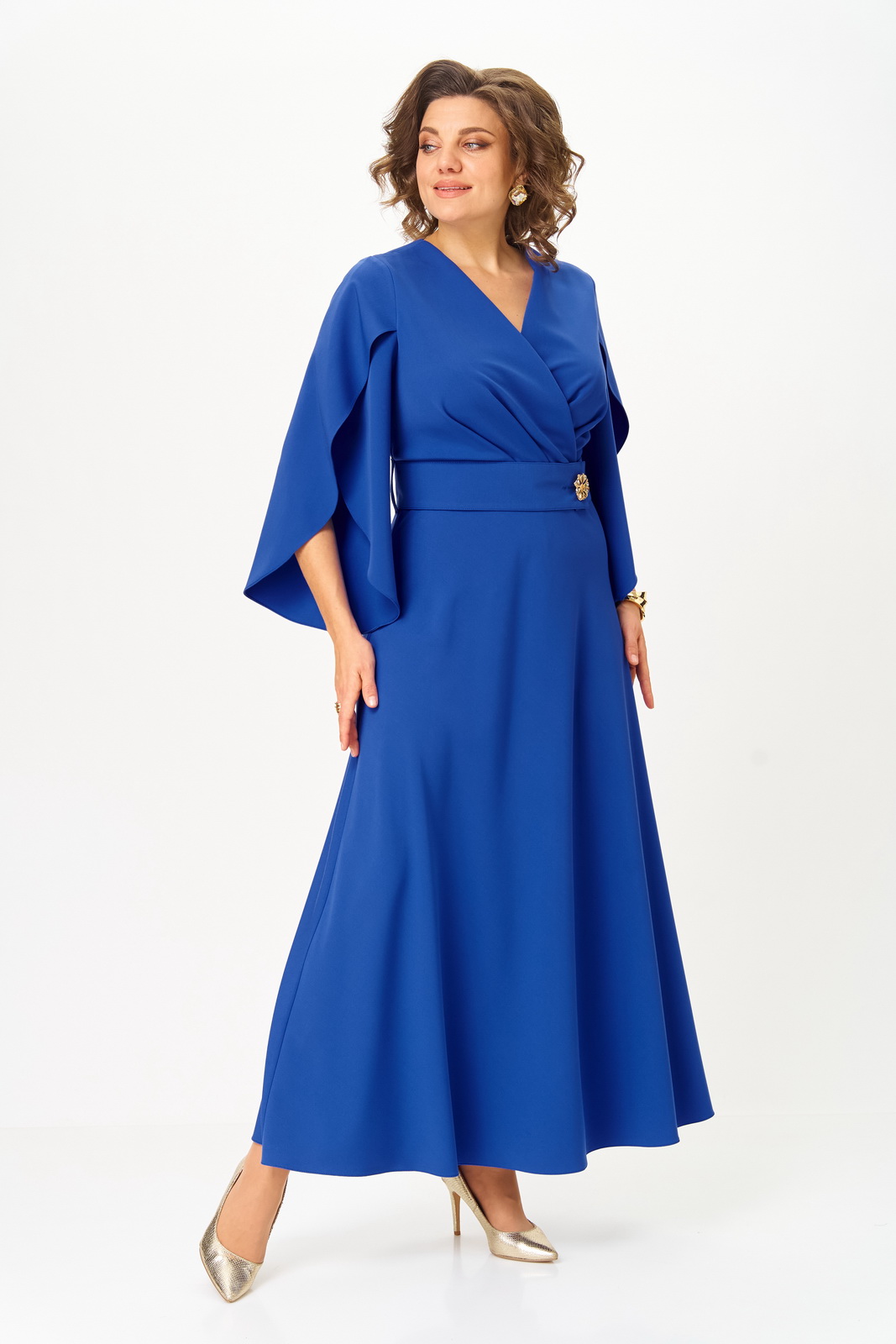 Платье длиной макси, с полуприлегающим лифом и юбкой А-образной формы, выполнено из однотонной ткани костюмно-плательной группы .
