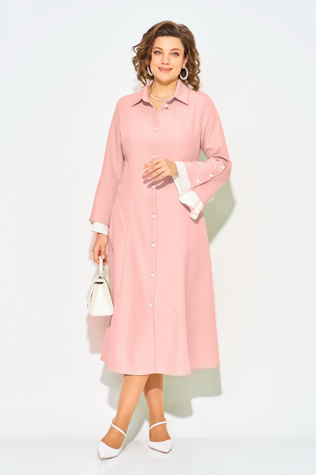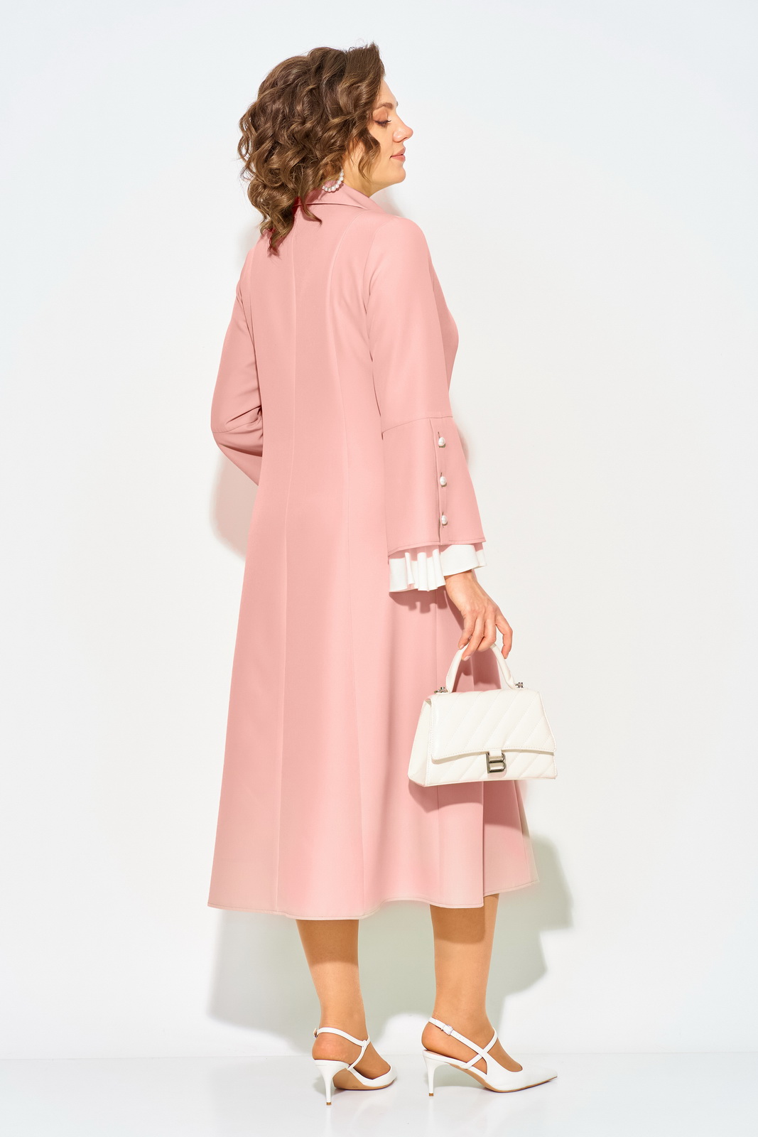 Описание: Нежное и романтическое, нарядное женское платье, длиной миди – станет отличным выбором для девушек и женщин, которые ценят комфорт и стиль. Модель полуприлегающего силуэта с продольными рельефами по полочке и спинке. Воротник отложной на цельнокроеной стойке. Застежка центральная на петли и пуговицы на планке. Эффектный длинный рукав, слегка расклешен к низу; имеет рюшу из отделочной ткани нежно-жемчужного цвета. Пуговицы под жемчуг украшают планку рукава и изделия! В платье имеются боковые карманы. Станьте обладательницей винтажного платья, чтобы подчеркнуть свою индивидуальность и создать стильный образ.