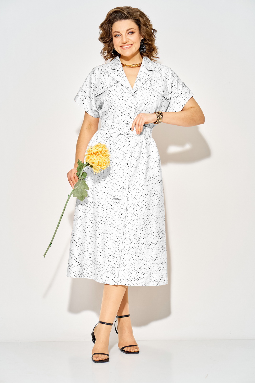Описание: Эффектное платье в стиле сафари, идеальный выбор для жарких будней и не только! Модель трапециевидного силуэта, с аккуратным отложным английским воротником. Застежка центральная, на петли и пуговицы с подбортом. Линия плеча спущена, переходит в цельнокроеный рукав с отрезными манжетами. Предусмотрены декоративные паты на рукавах и поясе! Платье с боковыми карманами. В комплект входит съемный пояс с роговой пряжкой в тон пуговиц. Модель доступна в больших размерах и подойдет для высоких и невысоких девушек. Это отличный вариант для повседневной носки, нарядного случая, а также для женщин, ценящих комфорт, элегантность и стиль.