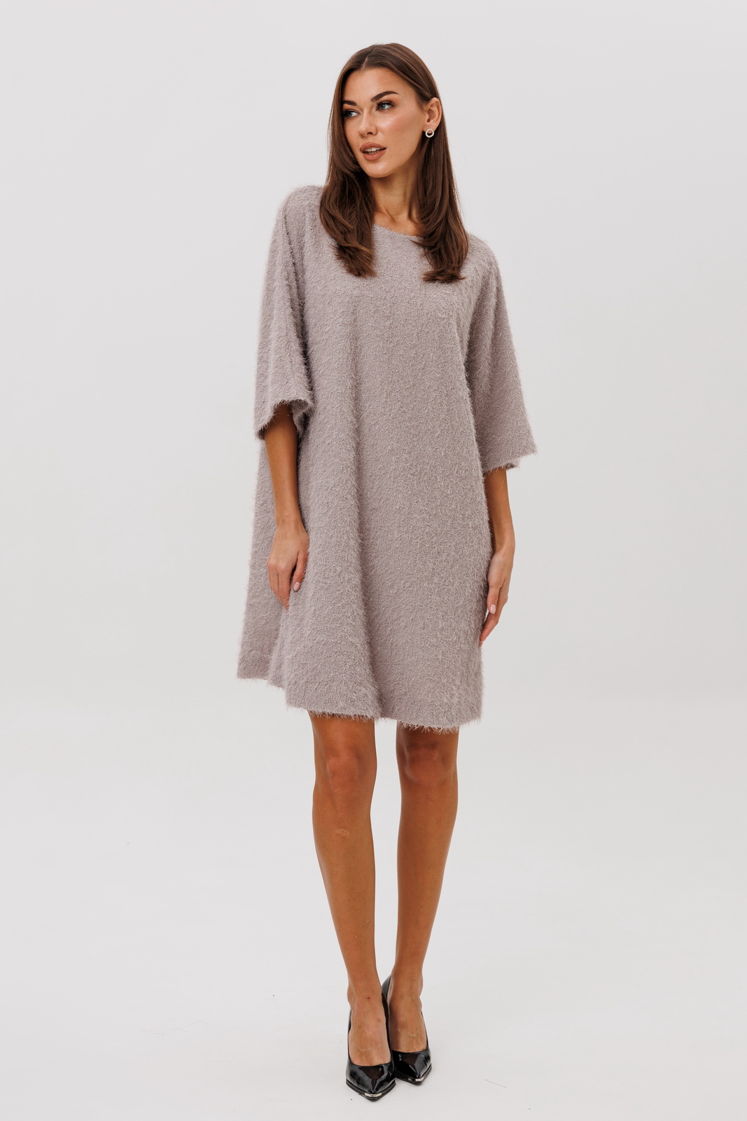 Лёгкое сияние волокон делает платье по-настоящему нарядным, но при этом универсальным: в нём одинаково эффектно выглядят и в повседневной обстановке, и на вечерних встречах. Удобная застёжка-молния на спинке завершает образ продуманной функциональностью.