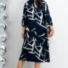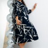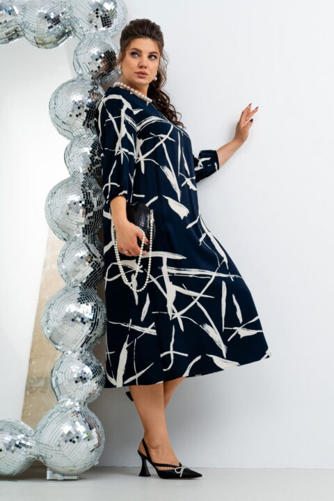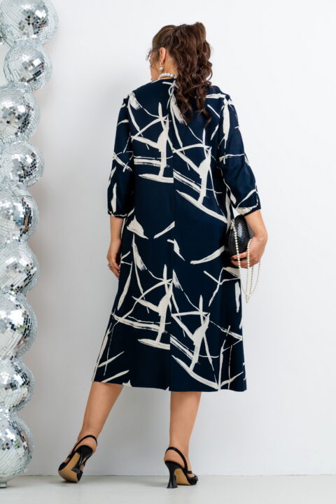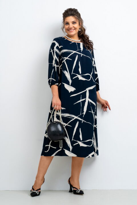 Описание: Платье А образного силуэта с округлым вырезом горловины и застежкой капелькой по спинке. По переду нагрудные вытачки. Рукав втачной одношовный с резинкой по низу. Спинка ср средним швом.