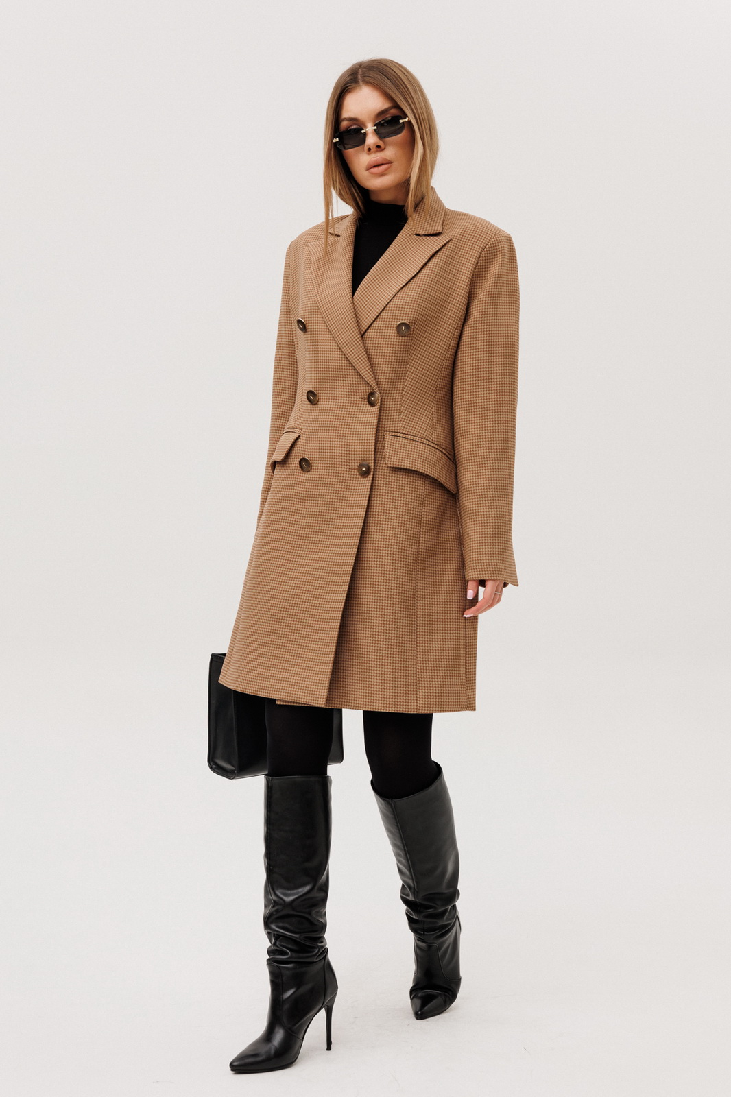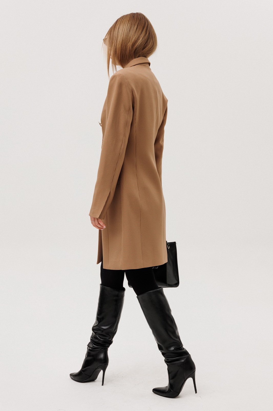 Описание: Платье-пиджак прилегающего силуэта,выполнен из теплой ткани.Застежка на петли-пуговицы,по переду действующие карманы,на рукавах шлицы.Изделие на подкладке