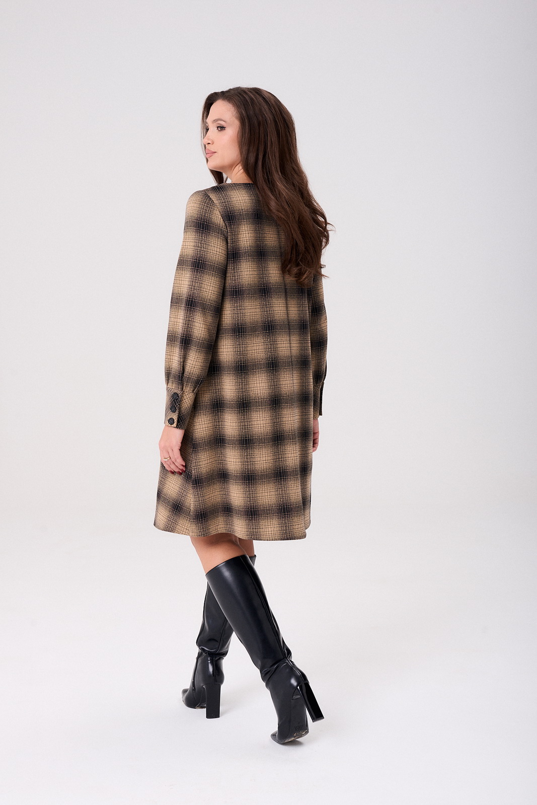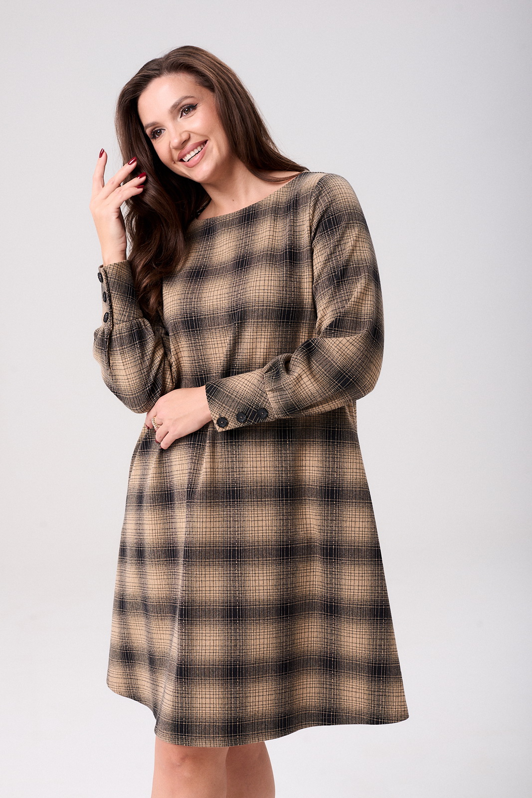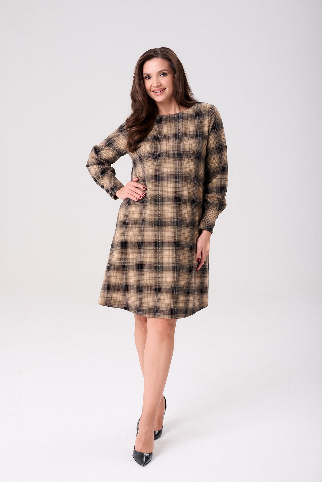 Описание: Стильное молодежное платье от бренда «AXXA» трапециевидного силуэта из высококачественного турецкого трикотажа. Изделие выгодно подчеркивает достоинства фигуры, скрывая при этом недостатки. Вырез горловины округлой формы. Рукав полной длины, оформлен притачной манжетой застегивающейся на ряд декоративных пуговиц. В боковых швах предусмотрены функциональные карманы. Уютное трикотажное платье в клетку с 3D эффектом в трендовой расцветке, безусловно, станет фаворитом в Вашем гардеробе.