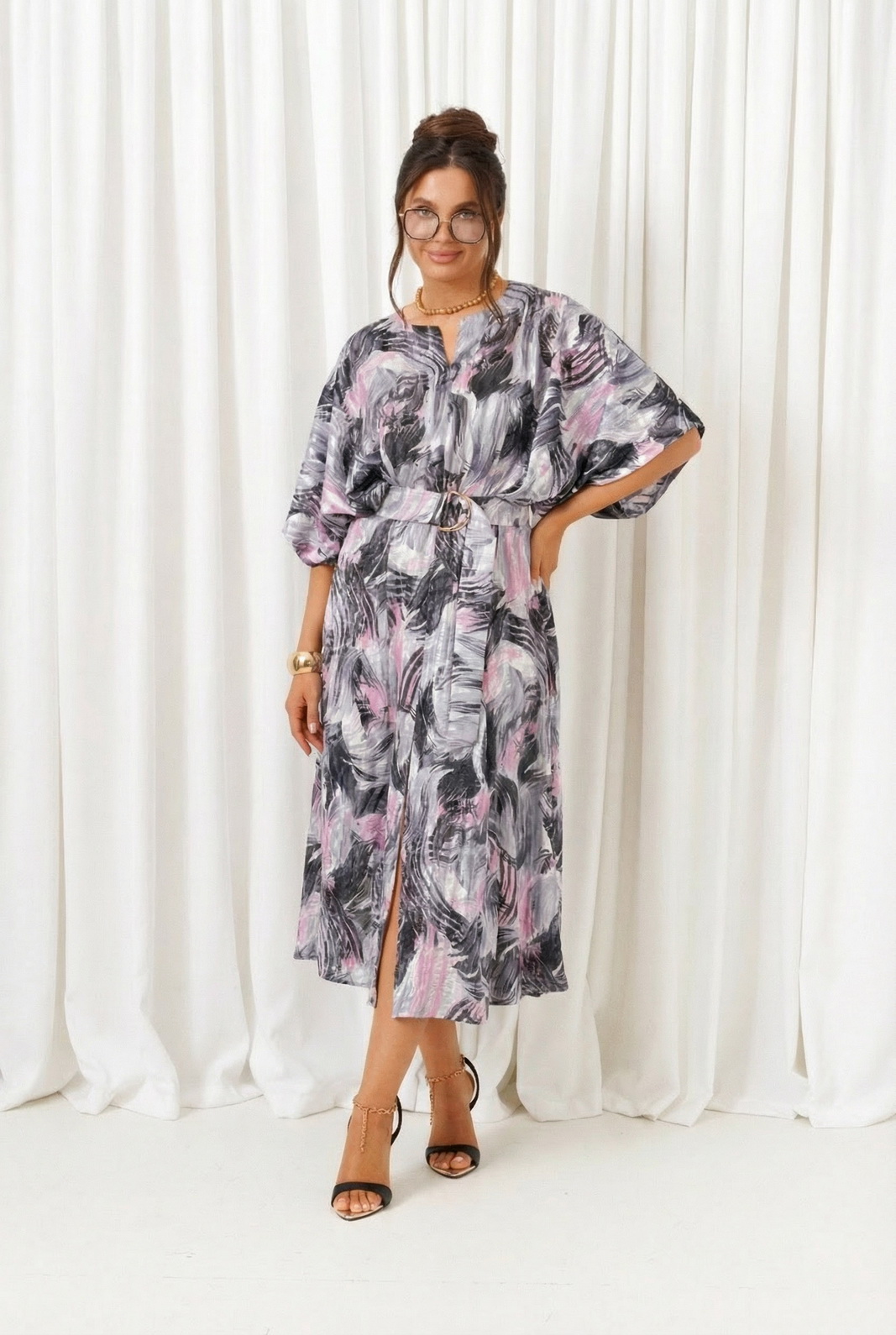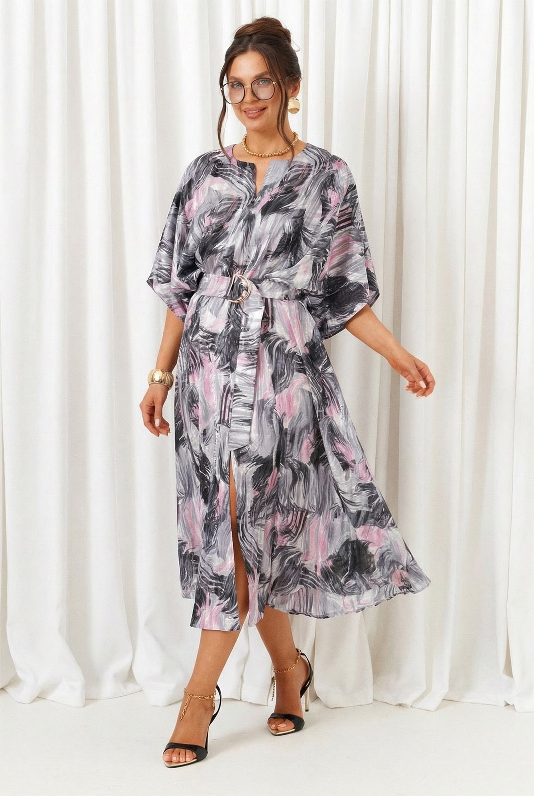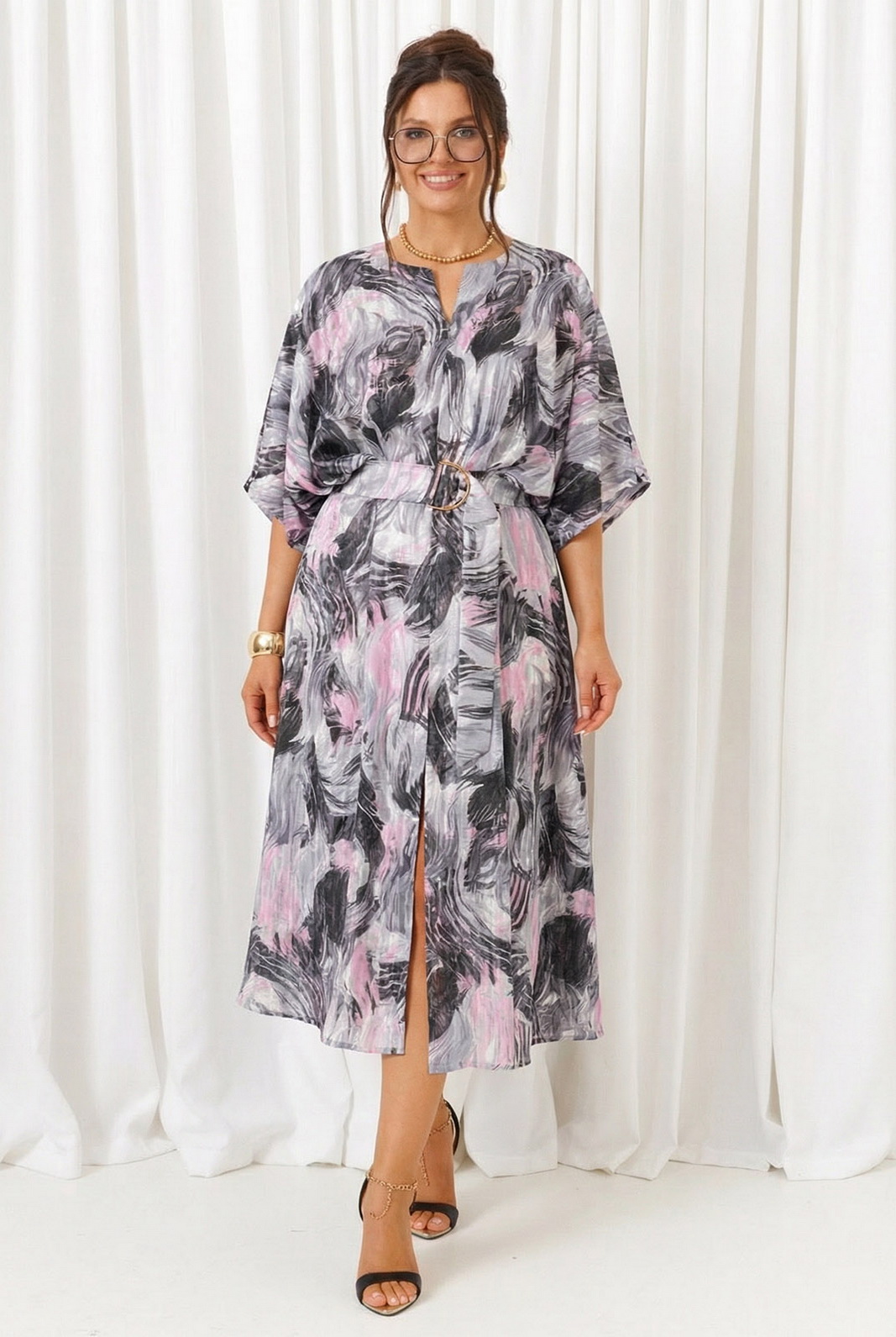 В комплекте к платью прилагается широкий пояс на пряжке.