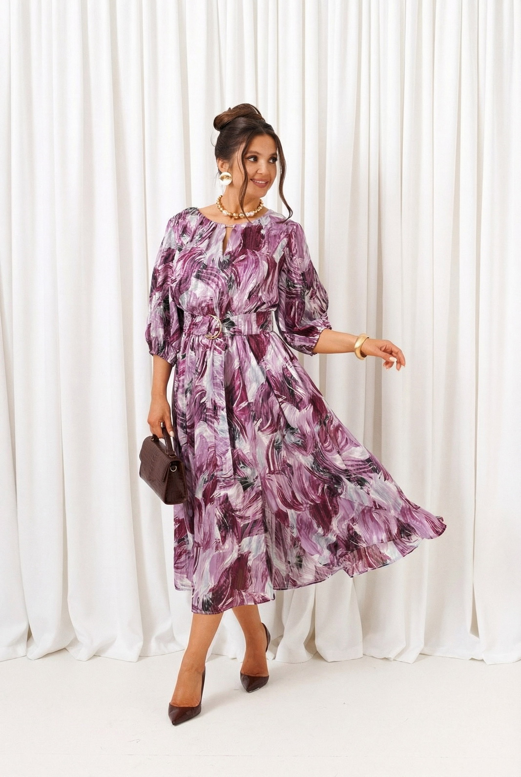 В комплекте к платью прилагается широкий пояс на декоративной пряжке.
