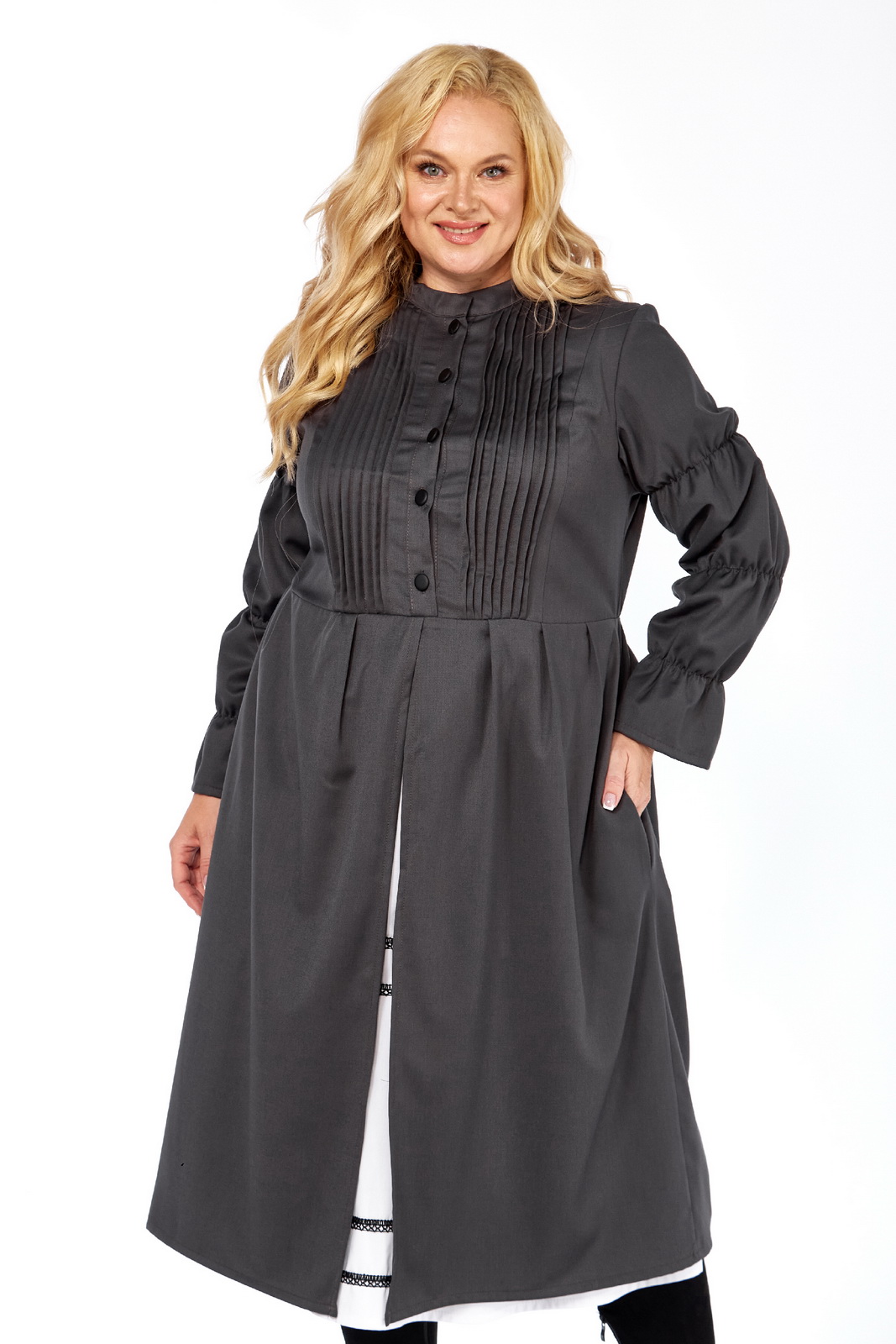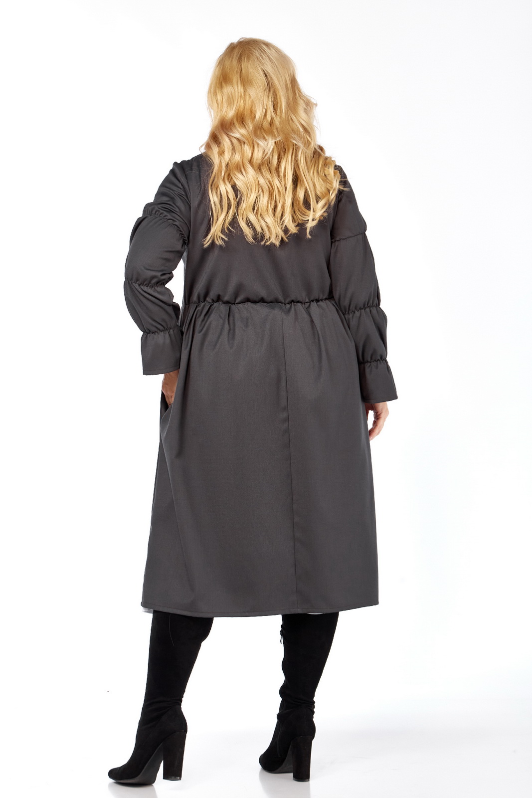 Приталенный силуэт с акцентом на талии достигается за счет призборенной спинки, обеспечивающей идеальную посадку по фигуре. Одношовный вточной рукав длиной 62 см завершается поперечной сборкой, создавая легкий и романтичный объем. Длина платья по спинке – 114 см.
