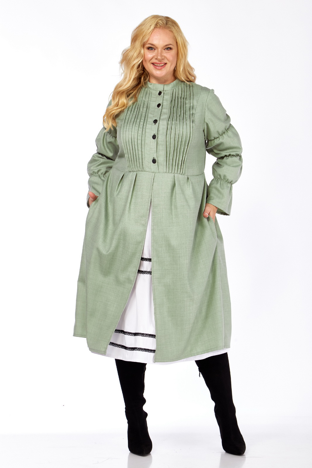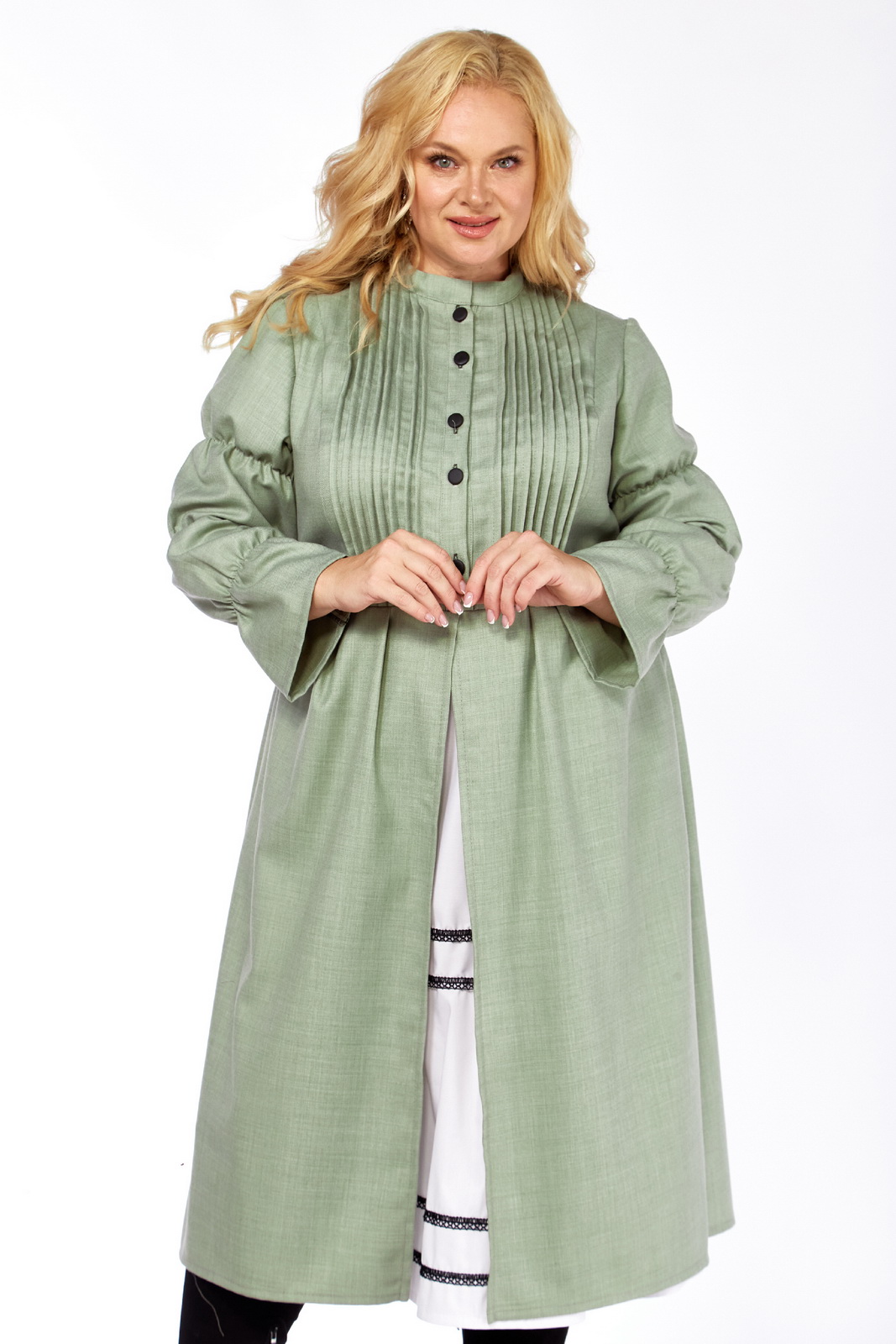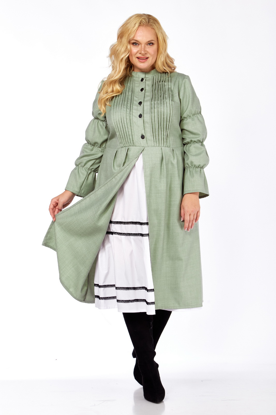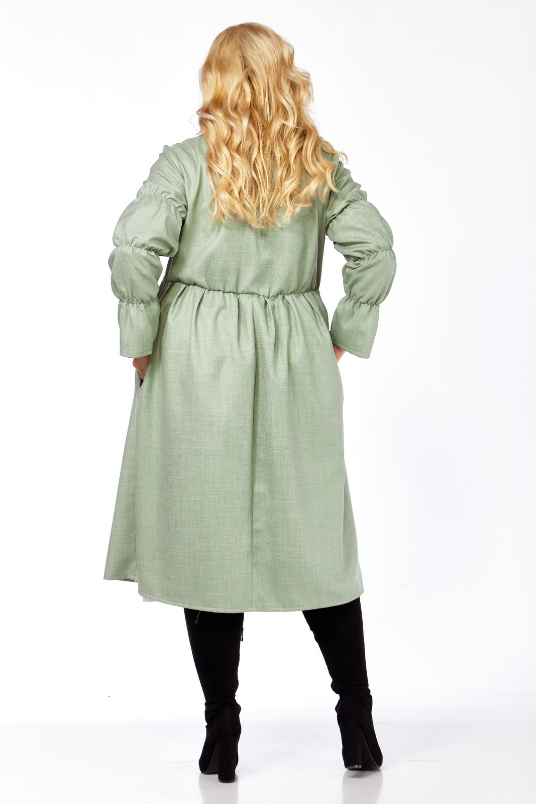 Приталенный силуэт с акцентом на талии достигается за счет призборенной спинки, обеспечивающей идеальную посадку по фигуре. Одношовный вточной рукав длиной 62 см завершается поперечной сборкой, создавая легкий и романтичный объем. Длина платья по спинке – 114 см.