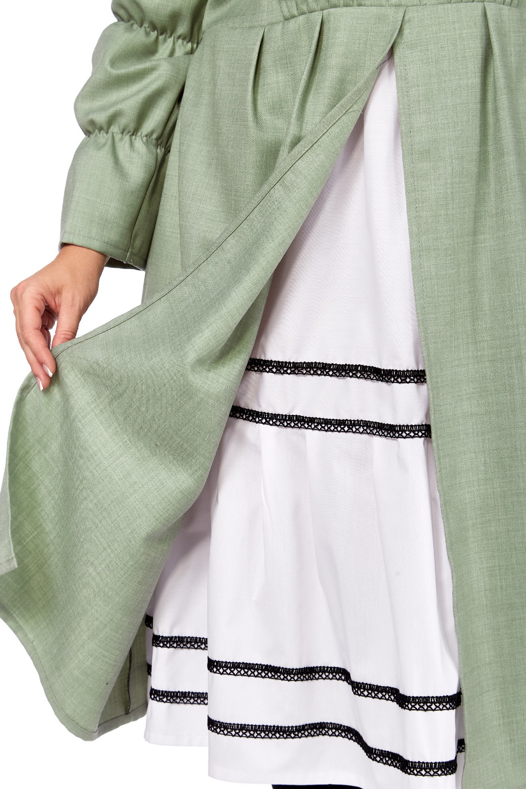 Главный секрет модели М 5052 – дуэт с расшитой тесьмой юбкой! Белая юбка с вышивкой создает эффект многослойности и добавляет образу легкости и женственности. Длина юбки с учетом пояса – 80 см.
