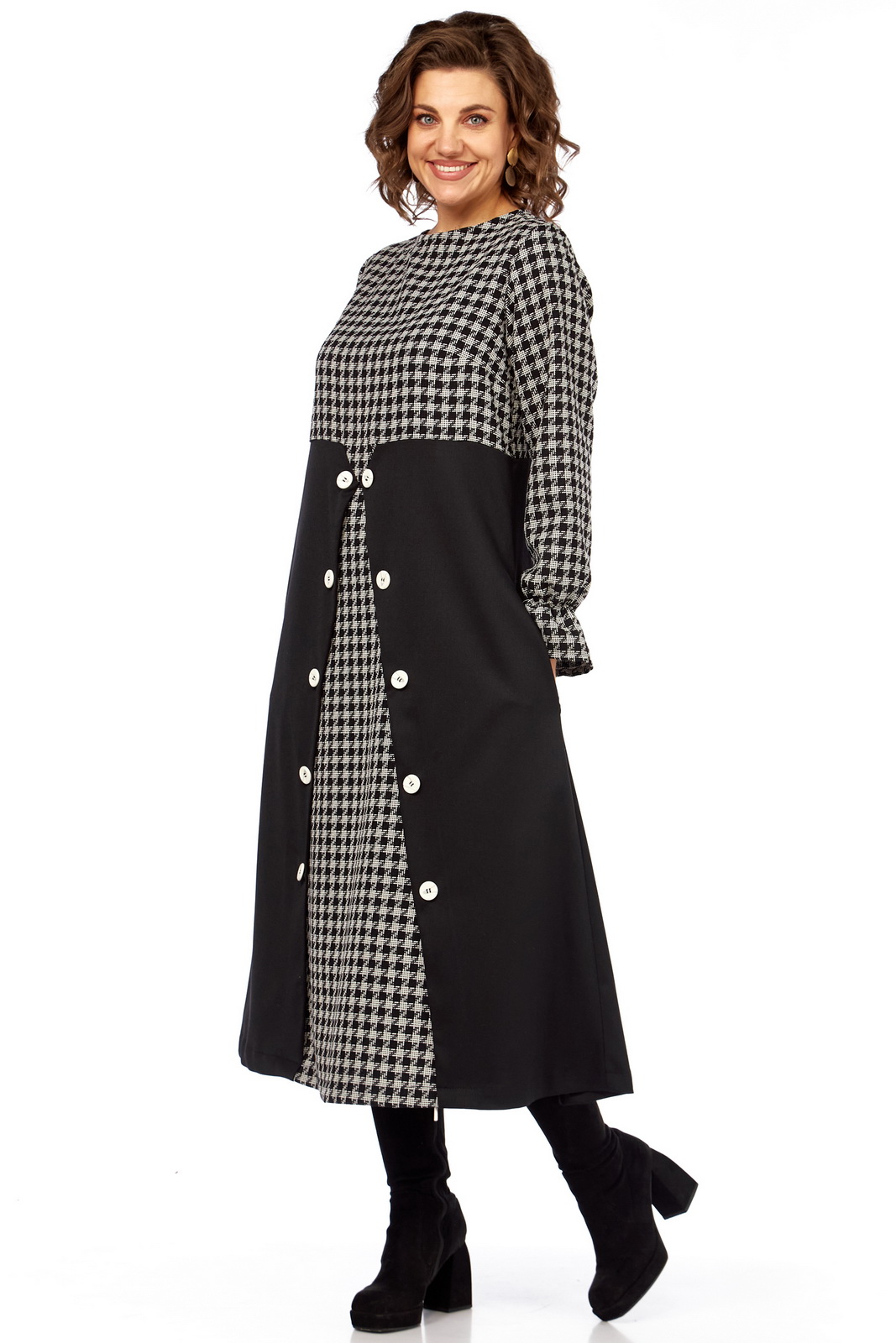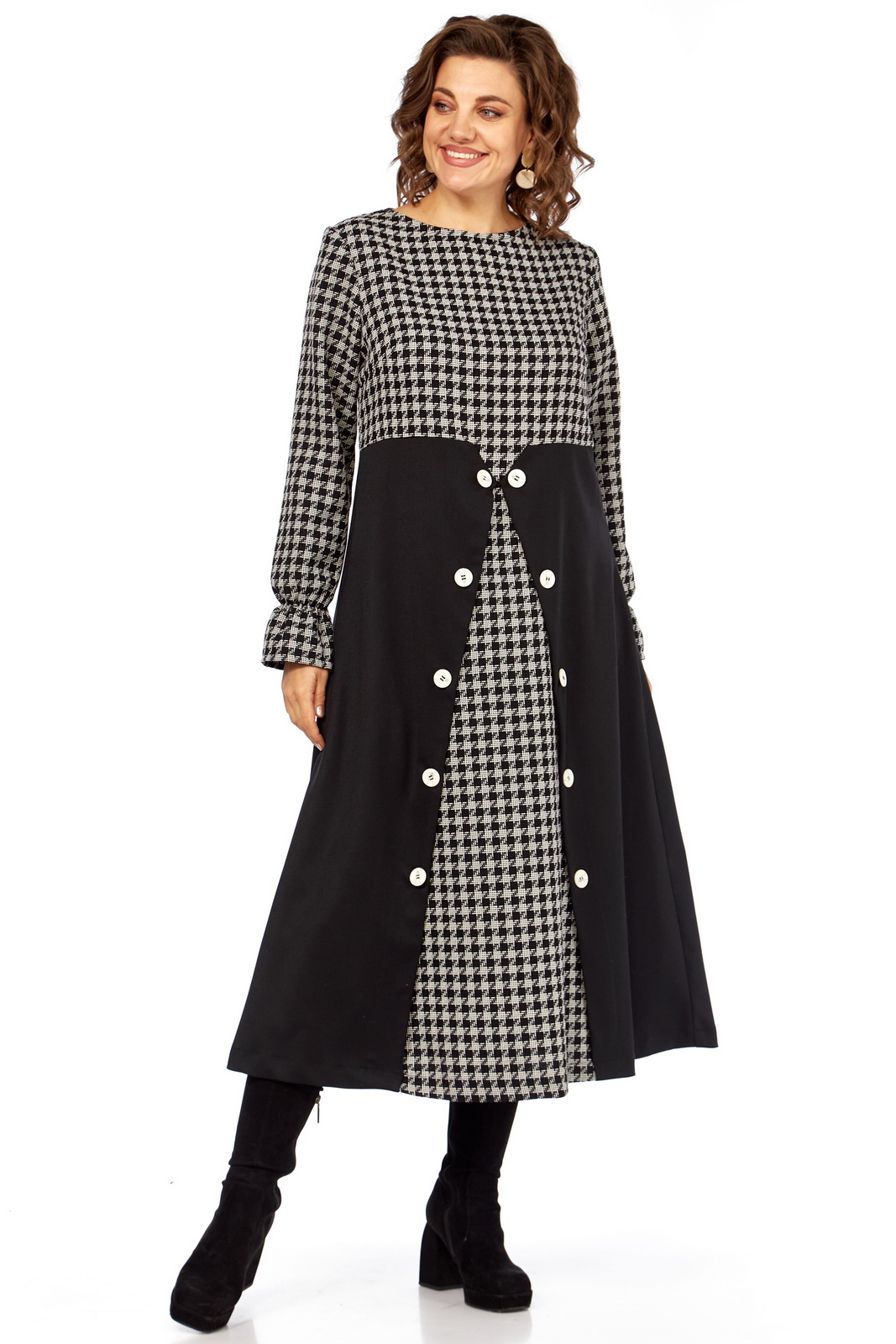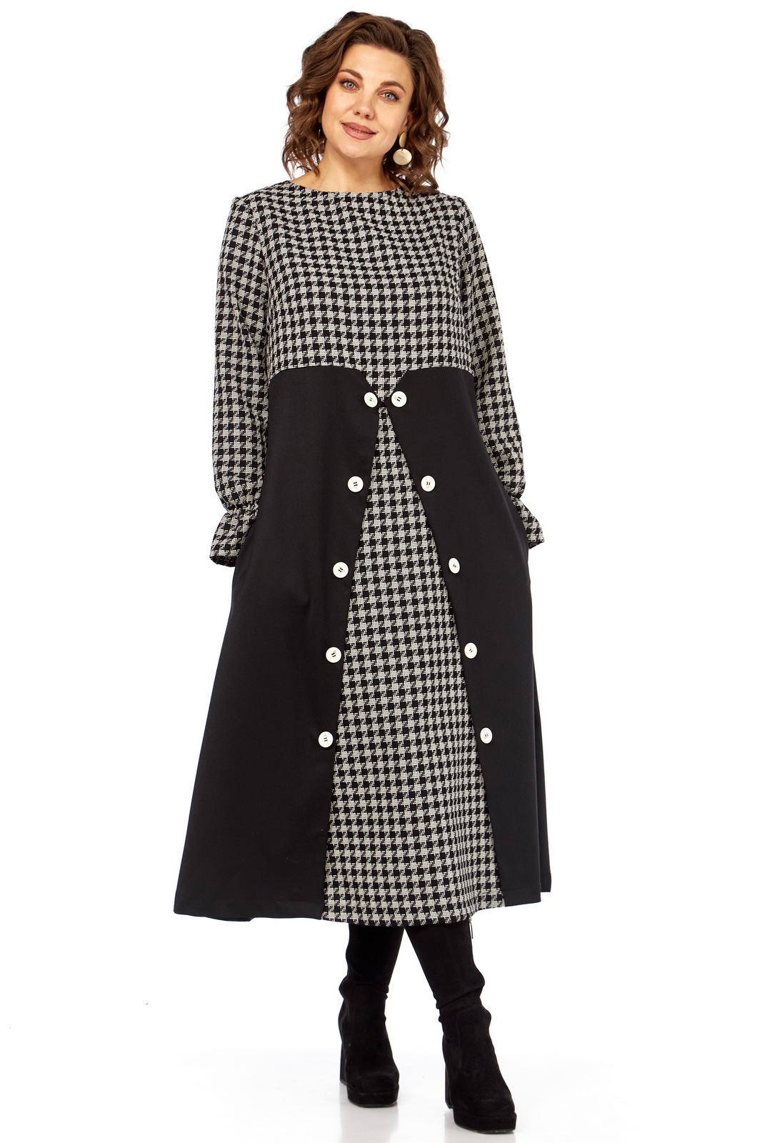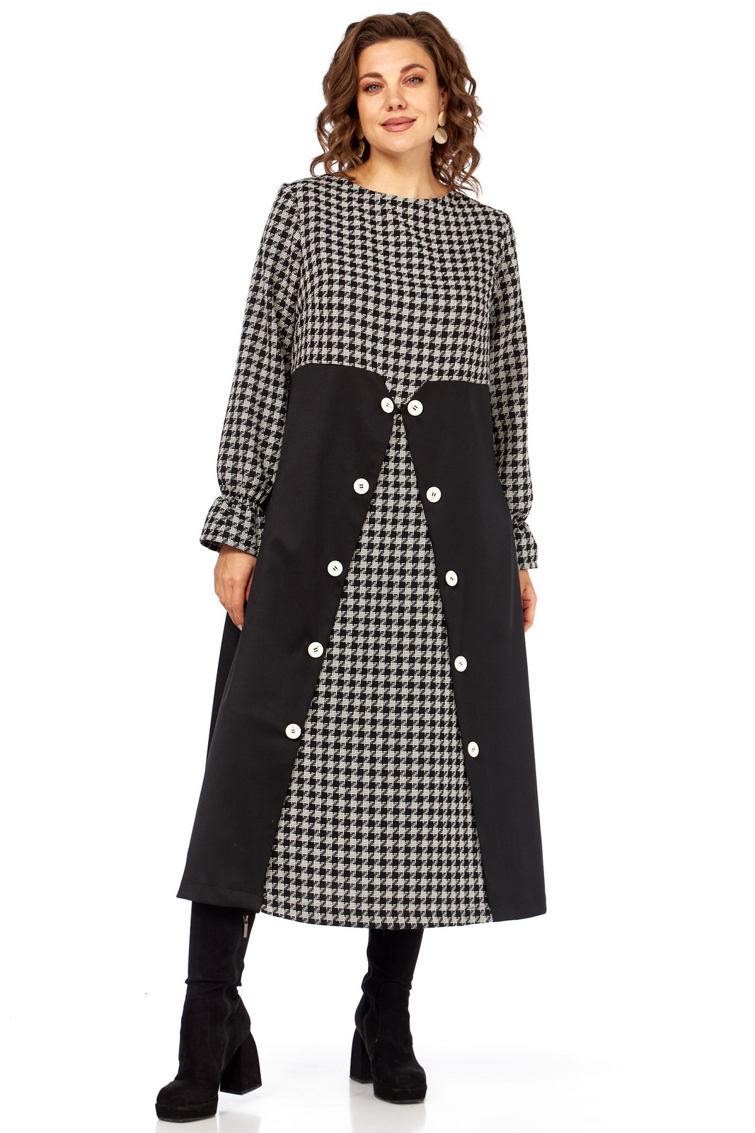 Описание: Вечная классика, которая всегда в моде, в платье «Шарм Одри». Платье имитирует сочетание стильного топа с принтом «гусиная лапка» и элегантной юбки-пальто. Это создает эффект многослойности и делает образ более глубоким и интересным, при этом являясь единым цельным нарядом.