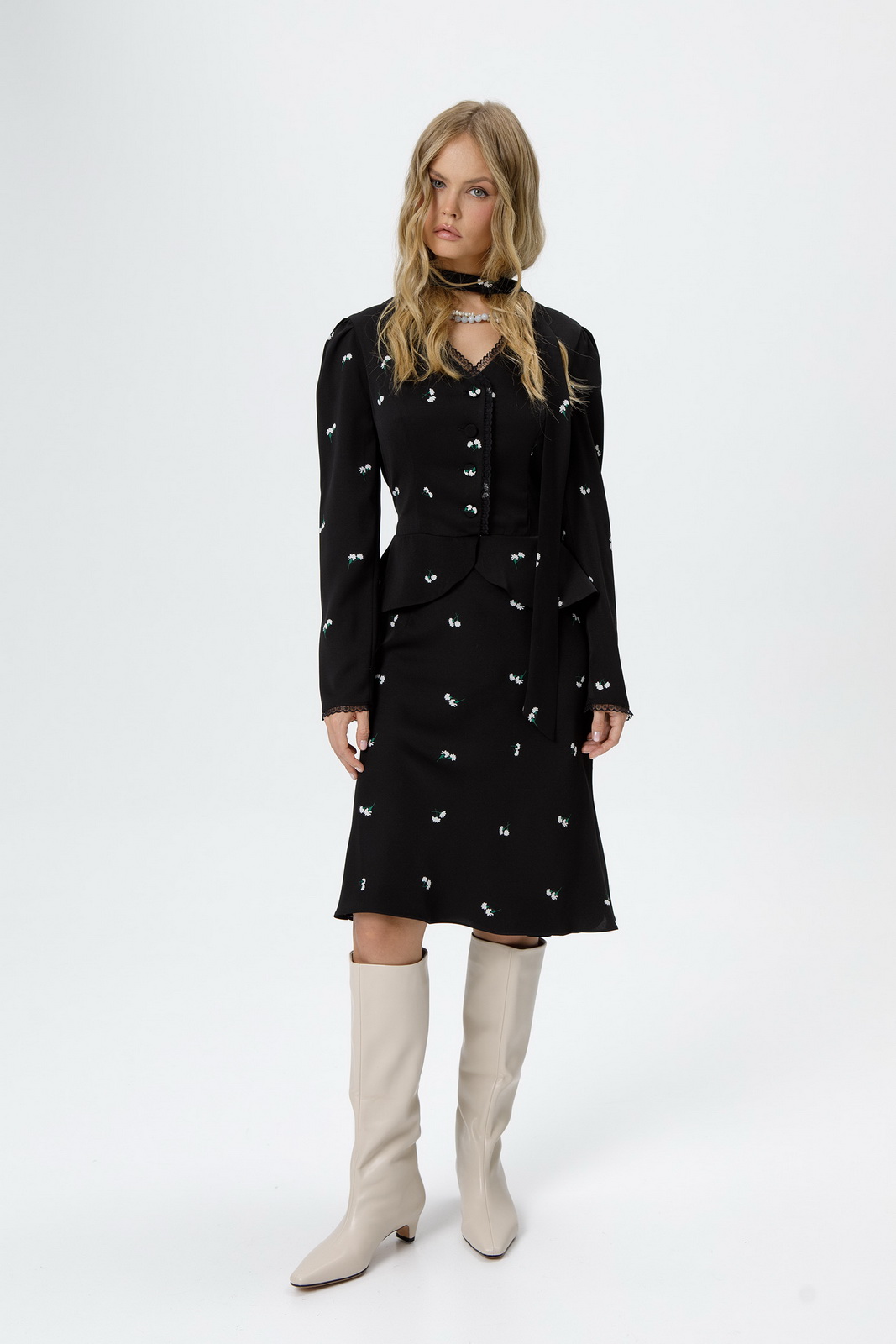 Описание: Платье в винтажном стиле с баской и кружевом.