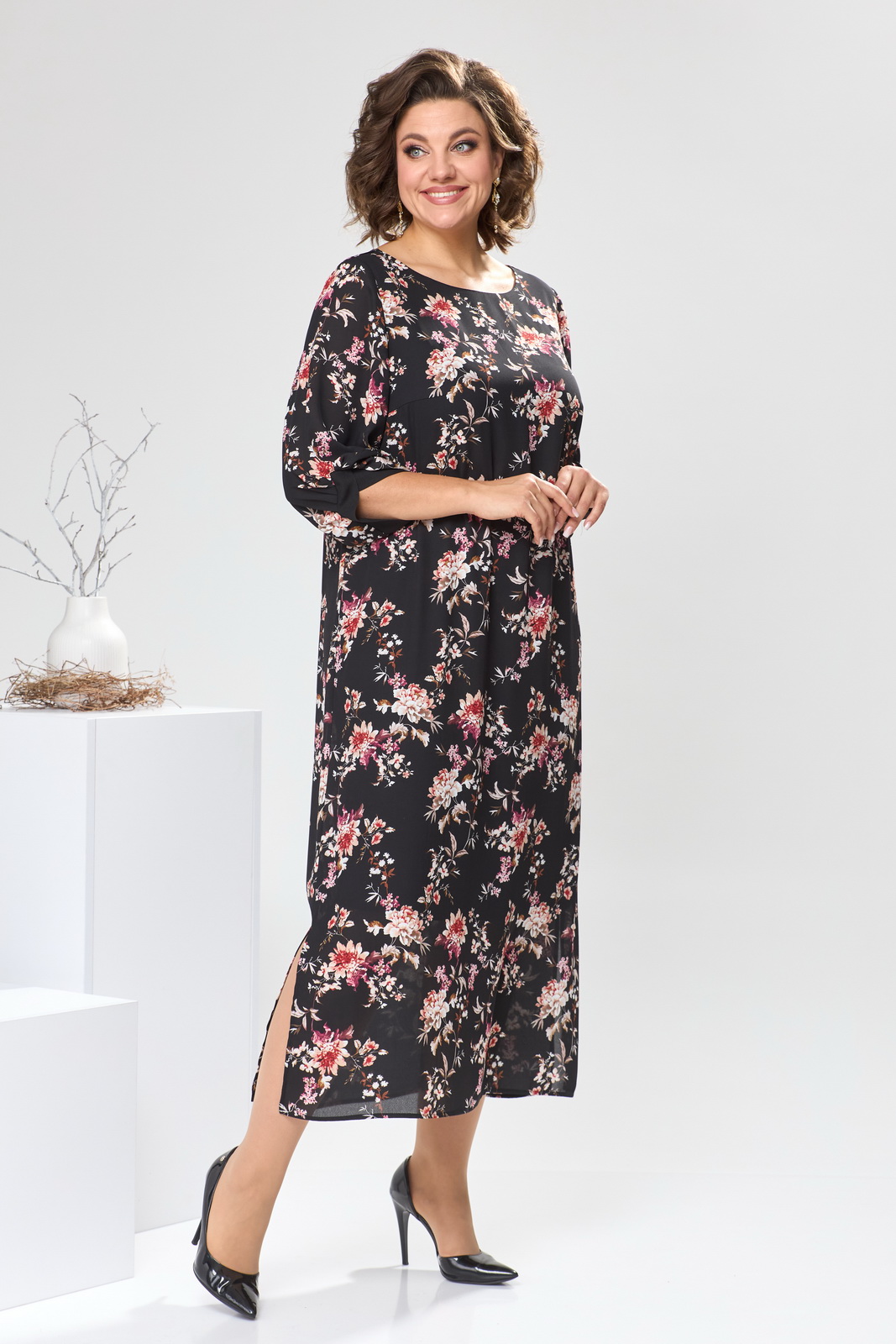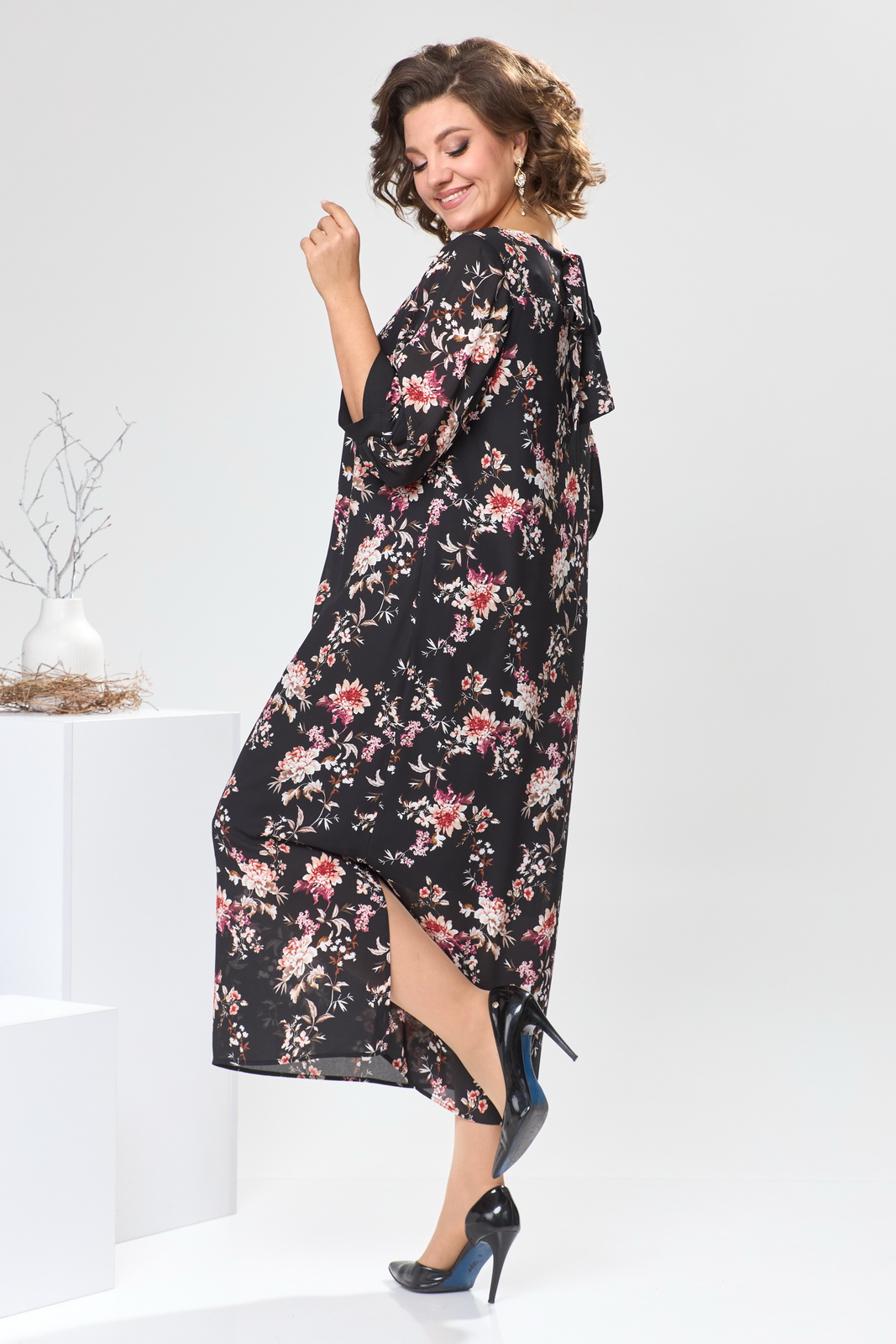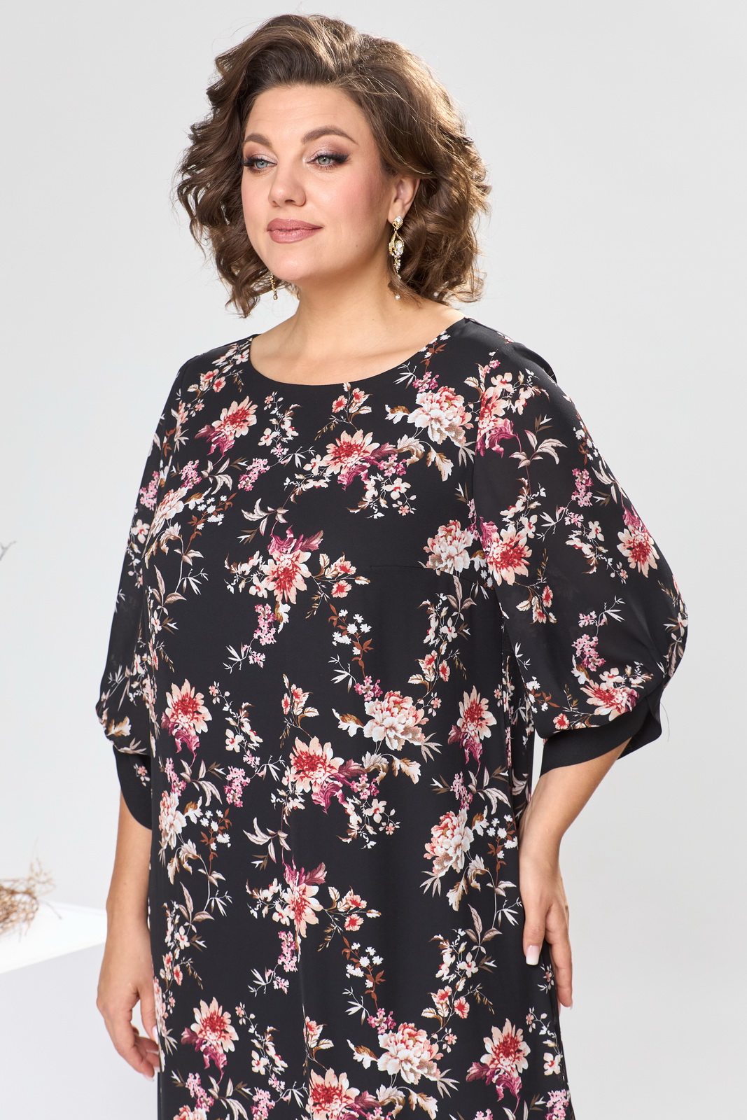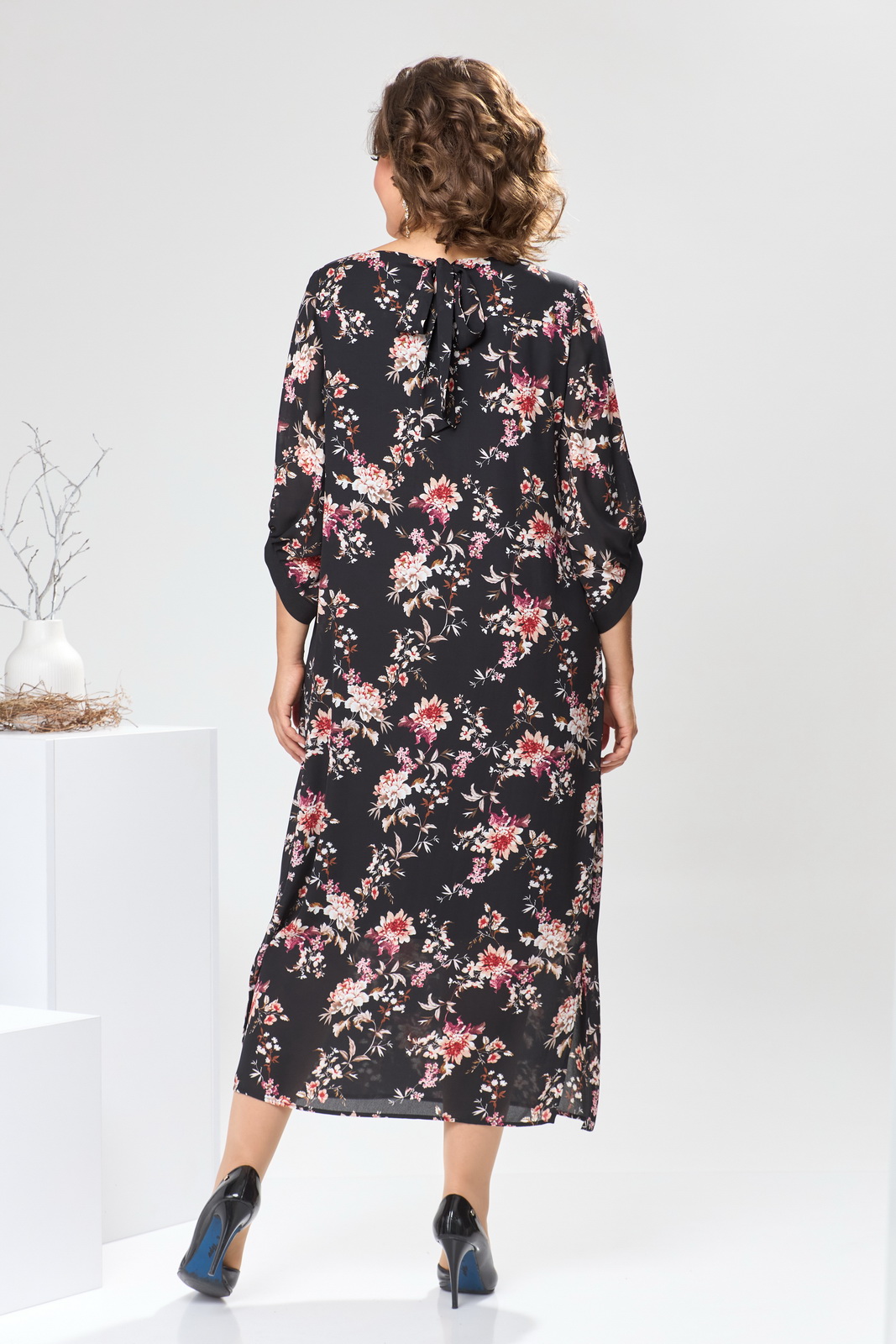 Описание: Платье женское относится к нарядной торжественной одежде. Платье женское прямого силуэта, длиной до нижней части икры. Перед с 2-мя нагрудными вытачками. Спинка с отрезной кокеткой с фигурным обтачным разрезом, фиксирующимся по горловине на 2-е обточные завязки. Горловина круглая, обтачная, без воротника. Рукав втачной, одношовный, длиной 3/4 с фигурным низом с 14-ю односторонними складками (по 7 с каждой стороны от угла манжеты), с притачной манжетой из отделочной ткани. Боковые швы с разрезами. Платье на подкладке. Платье без плечевых накладок.