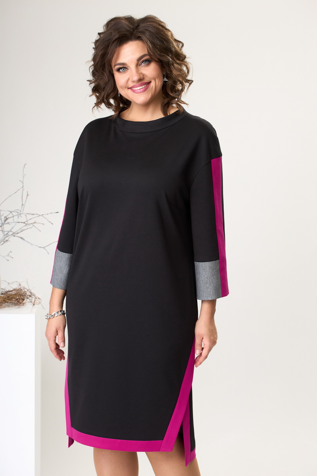 Описание: Платье женское для повседневной носки. Платье женское прямого силуэта, длиной за колено, с фигурным низом “ступенька”. Перед с двумя нагрудными вытачками. Спинка цельнокроеная. Боковые швы с фигурными разрезами. Разрезы и низ платья с приточными планками из отделочной ткани. Горловина круглая с втачной стойкой. Платье со спущенным плечом. Рукав втачной, длиной 7/8, с приточной вертикальной планкой из отделочной ткани по центру и приточной манжетой из отделочной ткани. Платье без плечевых накладок. Длина рукава от горловины 60 см, длина спинки 103 см.