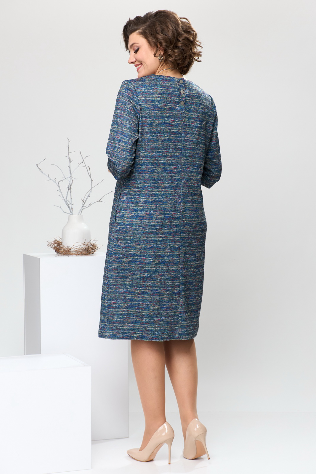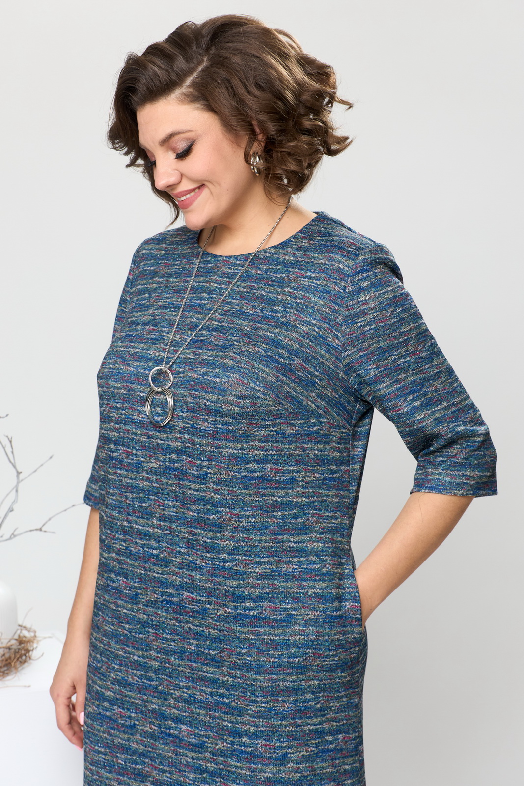 Описание: Платье женское предназначено для повседневной носки. Платье женское прямого силуэта, длиной за колено. Перед с двумя нагрудными вытачками. Спинка со средним швом, с двумя втачными планками вверху среднего шва. Застежка на три пробивных металлических кнопки на планках спинки. Горловина круглая, обтачная, без воротника. Рукав втачной, одношовный, длиной за локоть. В боковых швах платья обработаны карманы. Платье с плечевыми накладками. К платью прилагается съемное украшение. Длина платья 105 см. Длина рукава 40 см. ВНИМАНИЕ! Украшение входит в комплект с платьем!!!!!!!