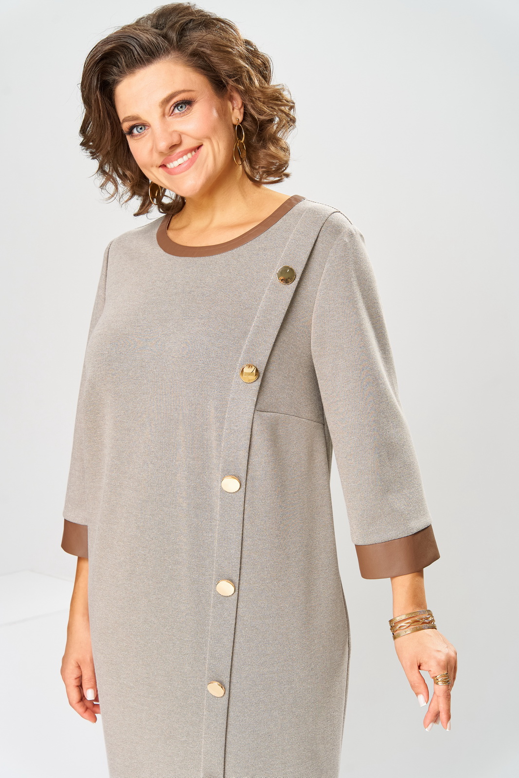 Описание: Платье предназначено для повседневной носки. Платье женское, полуприлегающего силуэта, длиной за колено. Перед с 2-мя нагрудными вытачками, с цельнокроенной вертикальной планкой шириной 3,5 см, закреплённой к переду 6-ю пришивными декоротивными пуговицами; перед с втачной планкой из лтделочной ткани. Спинка с 2-мя таллиевыми вытачками, с втачной металлической молнией, с втачной планкой из отделочной ткани по горловине. Платье с карманами в боковых швах. Рукав втачной, одношовный с притачной манжетой из отделочной ткани, рукав длиной 3/4. Платье с плечевыми накладками. Длина спинки платья 103,5 см, длина рукава 47 см.