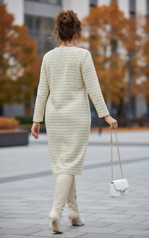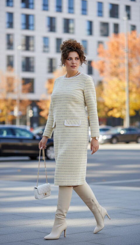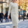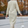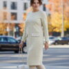 Описание: Стильное и комфортное платье из трикотажного полотна идеально подойдёт как для повседневной носки, так и для торжественных выходов. Платье подчеркивает достоинства фигуры и успешно скрывает все недостатки. Платье прилегающего силуэта длинны «миди» с округлой горловиной с отделкой в виде декоративной отделочной тесьмы. По переду платья нагрудные вытачки, отделочные клапана карманов с декоративной отделкой в виде тесьмы. По спинке застёжка на декоративную тесьму-молнию. Рукав в платье втачной, длинный. Платье на подкладке.