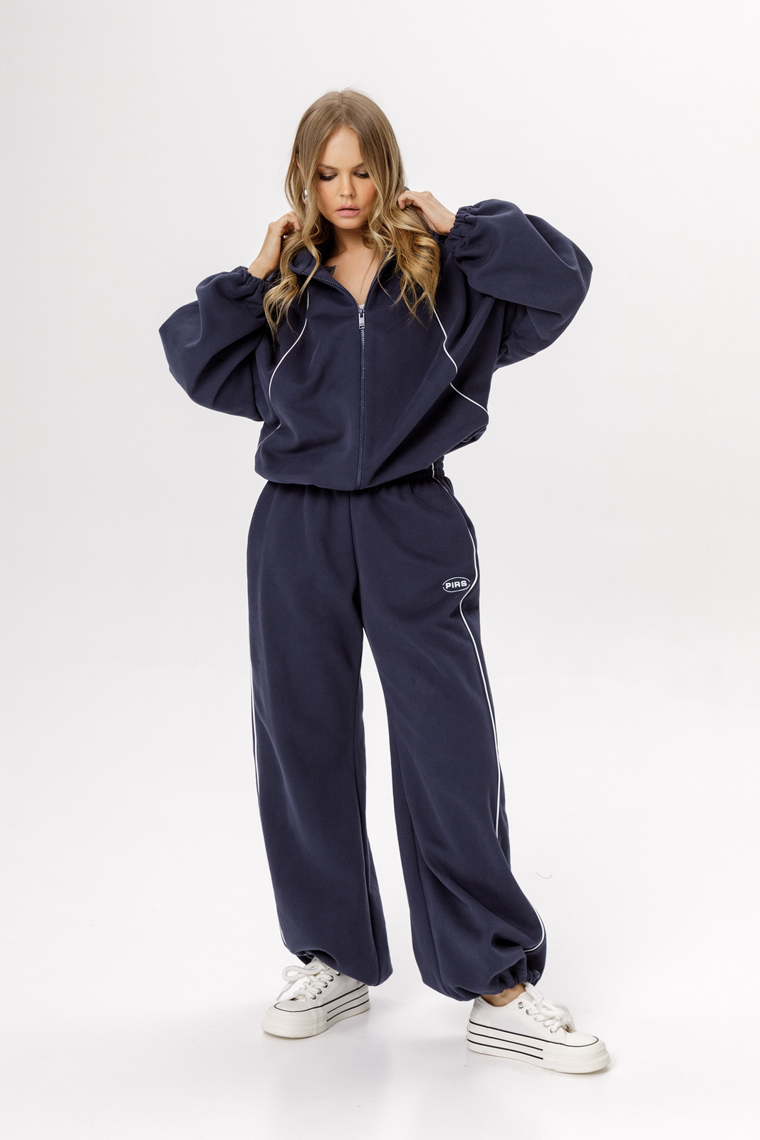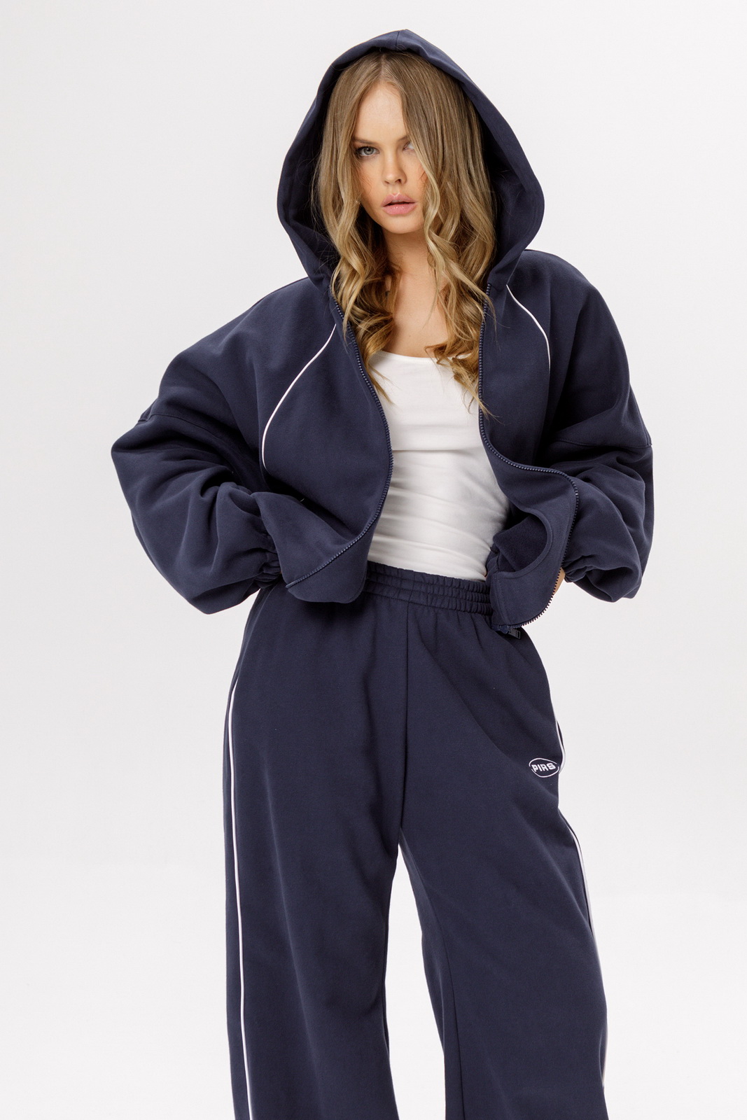 Описание: Хлопковый оверсайз зип-худи с ширкими рукавами и контрастным кантом (приобрести брюки с фото можно по арт. 6533).