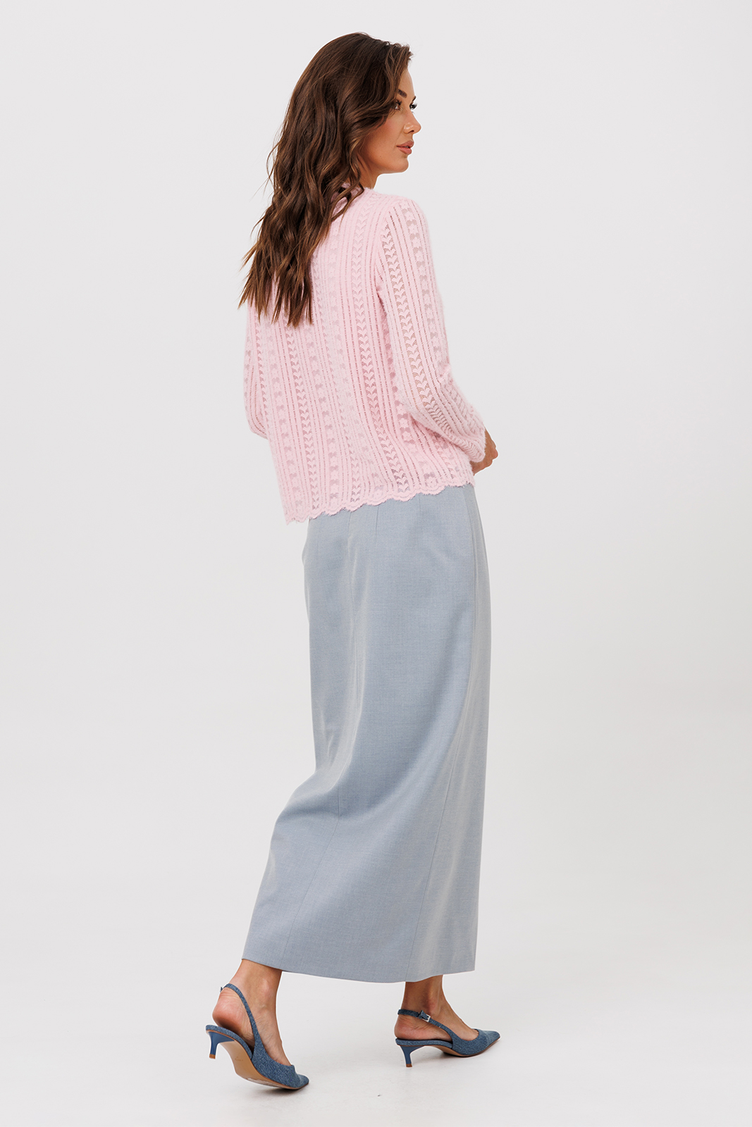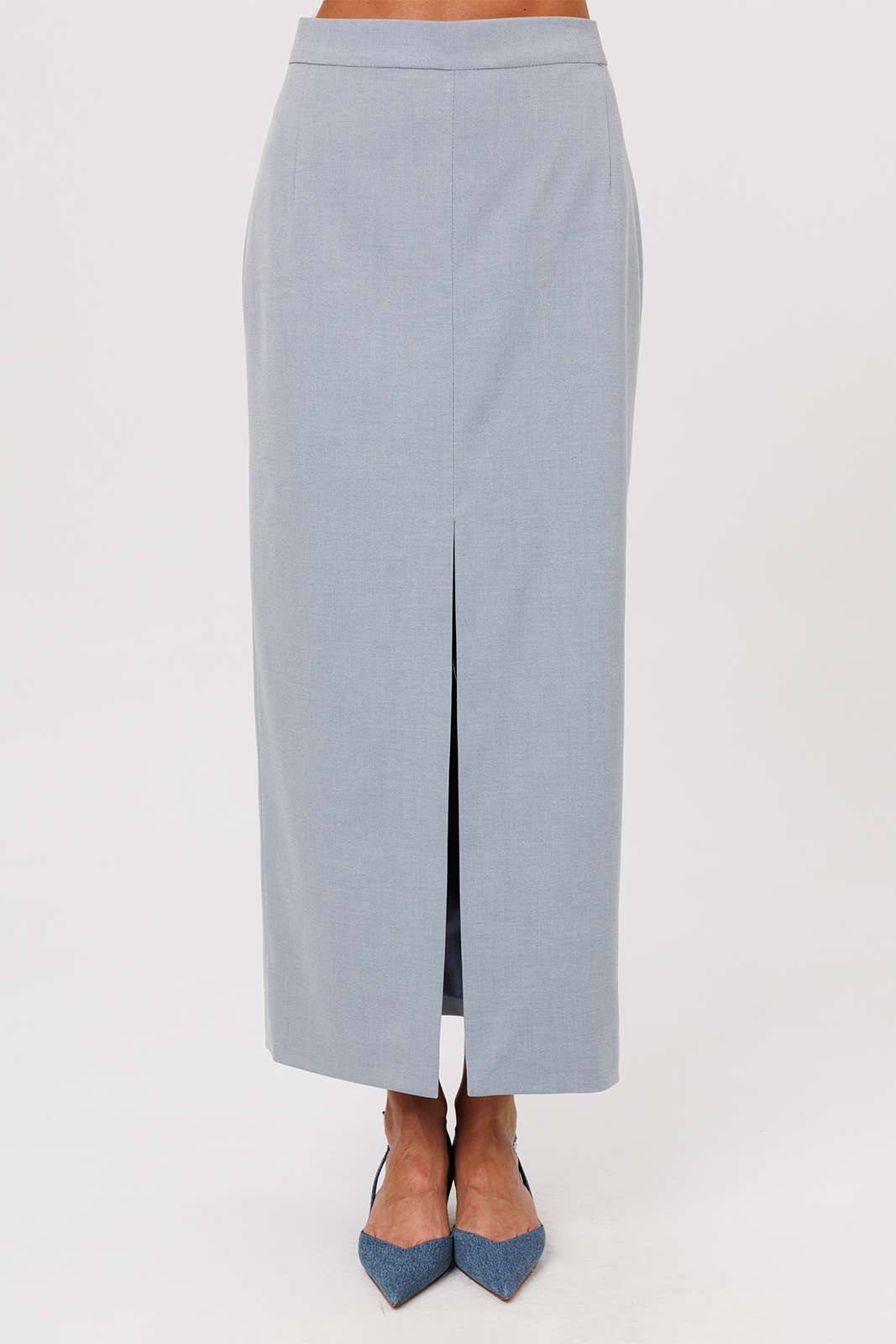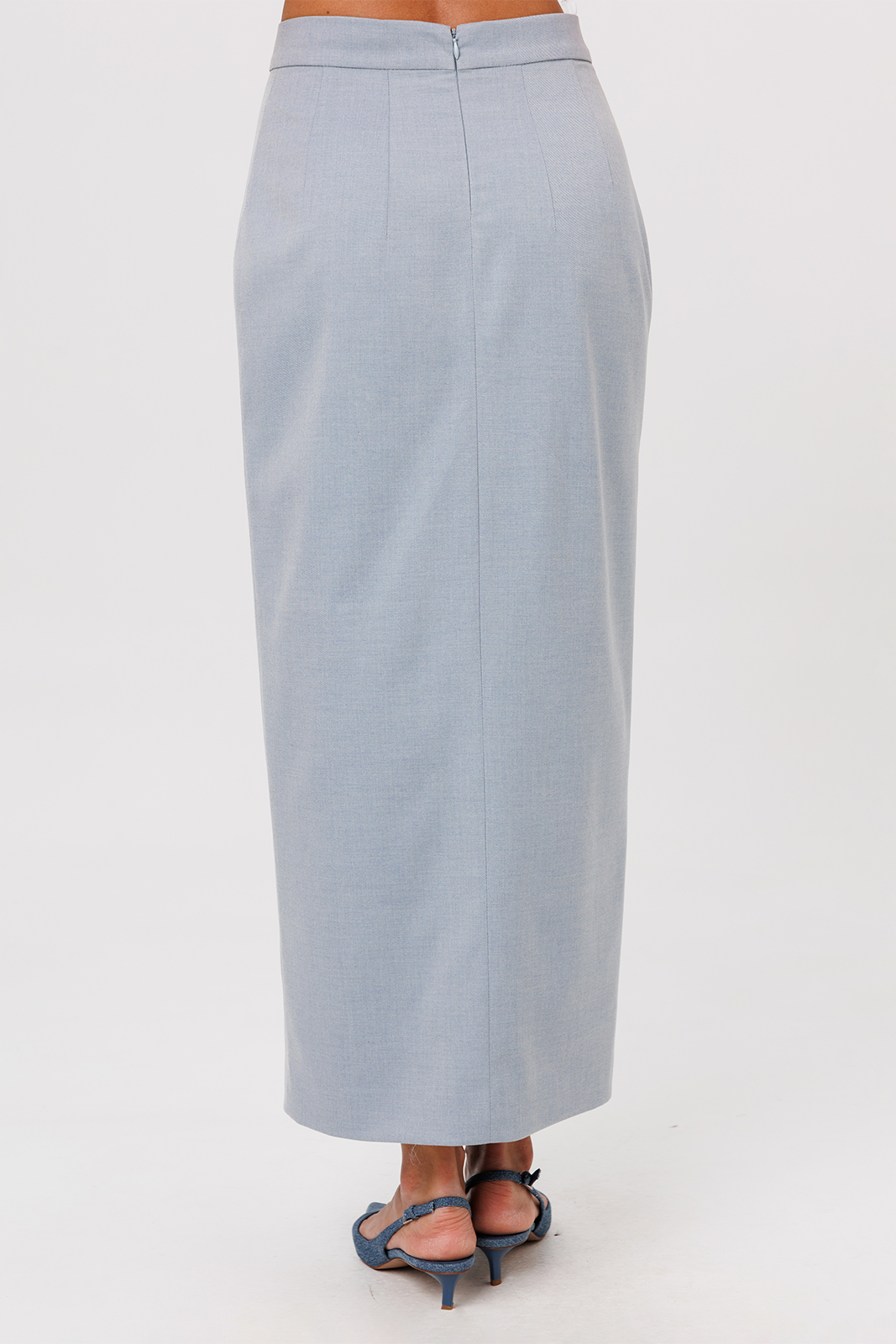 Описание: Юбка длинная прилегающего силуэта на притачном поясе. По переду вертикальные вытачки от пояса и центральным швом внизу заканчивающимся высоким разрезом. Спинка с 2-мя вертикальными вытачками от пояса, центральным швом и застежкой на потайную тесьму-молнию в центральном шве. Юбка на подкладке.