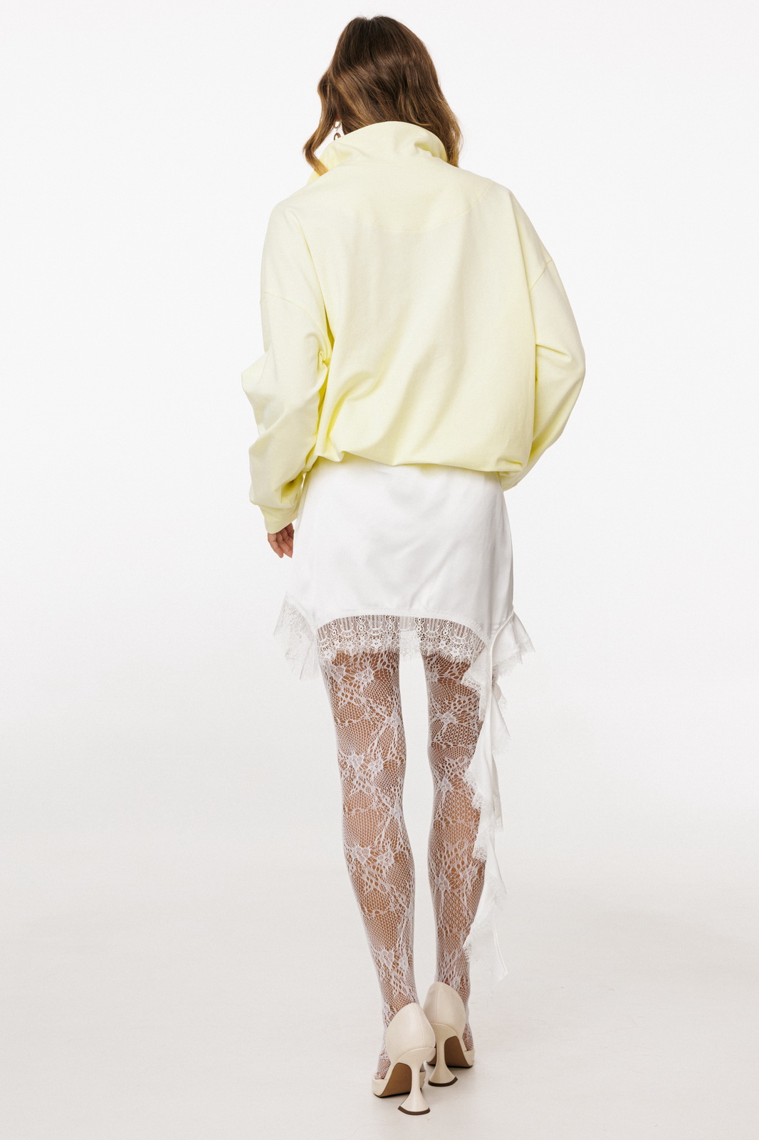 Описание: Юбка выполнена из тонкого атласа. Юбка прямого силуэта, длиной выше линии колена. Юбка на цельнокроеном поясе с эластичной тесьмой. Низ юбки фигурной формы. Юбка декорирована по низу тесьмой-кружевом и воланом с одной стороны. Юбка на подкладке.