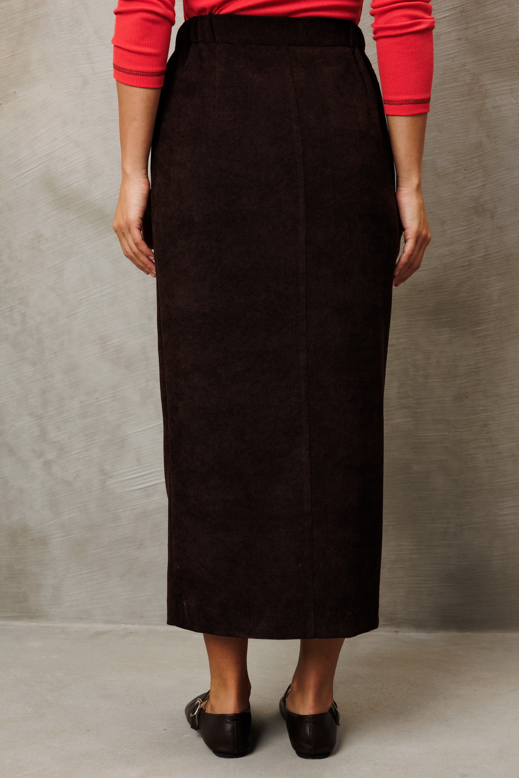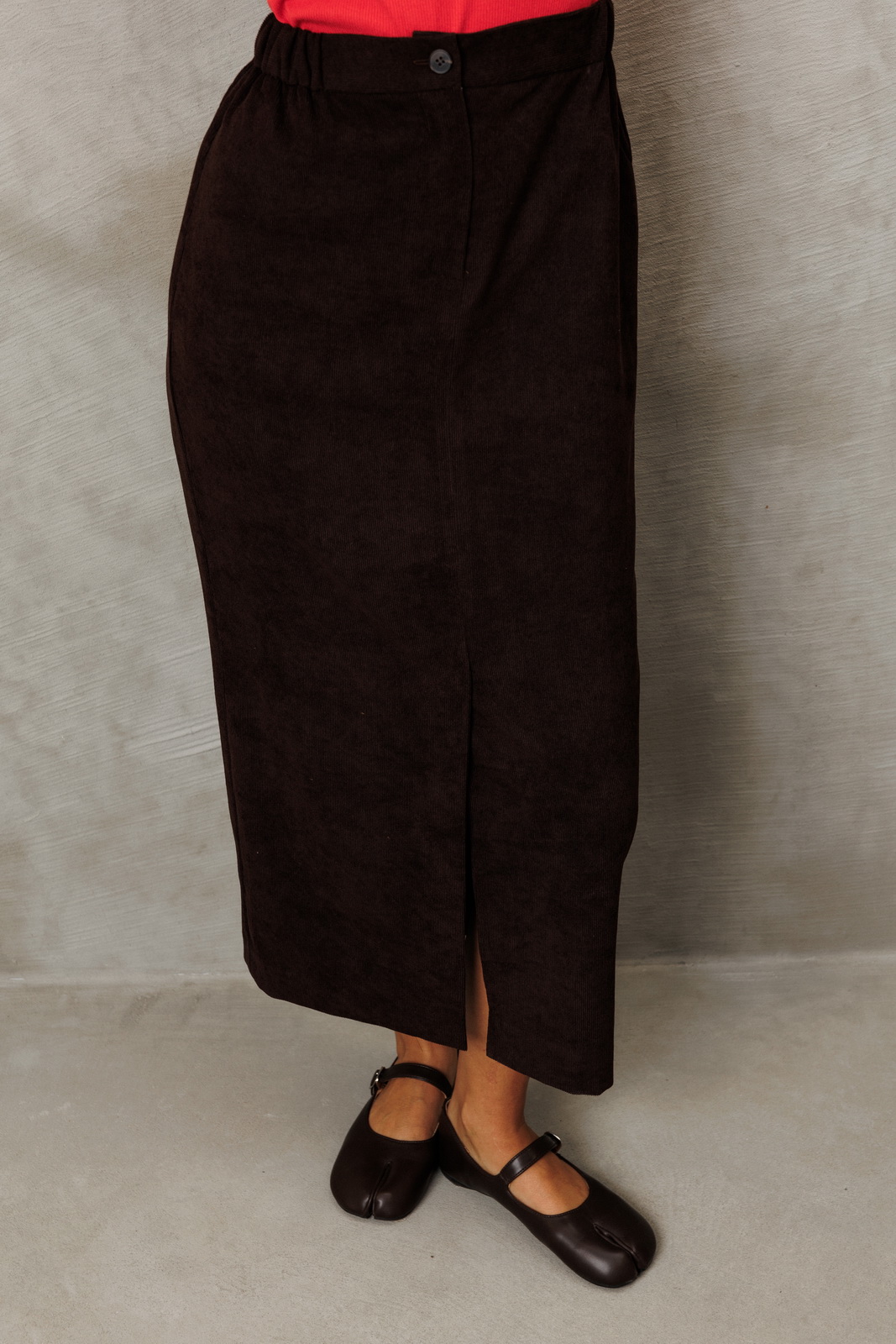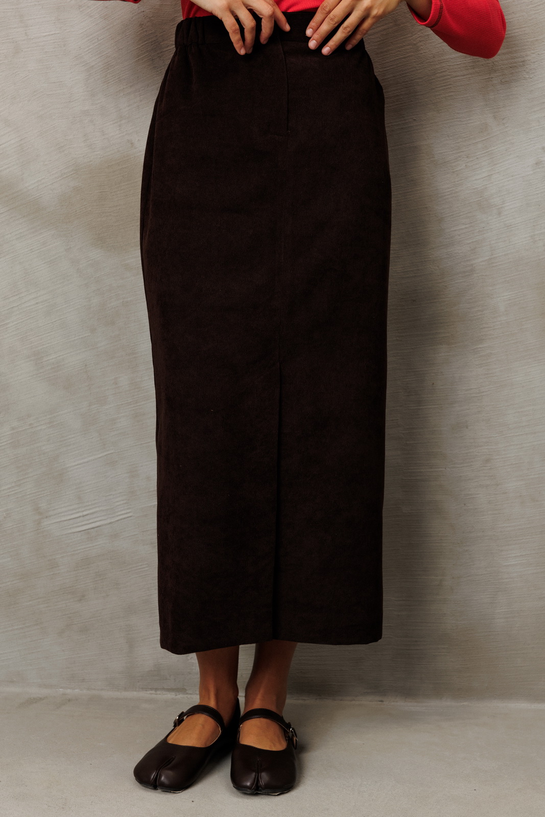 Описание: Юбка прямого силуэта выполненная из мягкой вельветовой ткани. Передняя честь юбки с вытачками, со средним швом и застежкой гульфиком на молнии и щлицей спереди. Задняя часть юбки с вытачками. Юбка на притачном поясе с затежкой на петлю и пуговицу спереди и резинками по бокам. Юбка на подкладке. Длина юбки с учетом пояса – 90 см.
